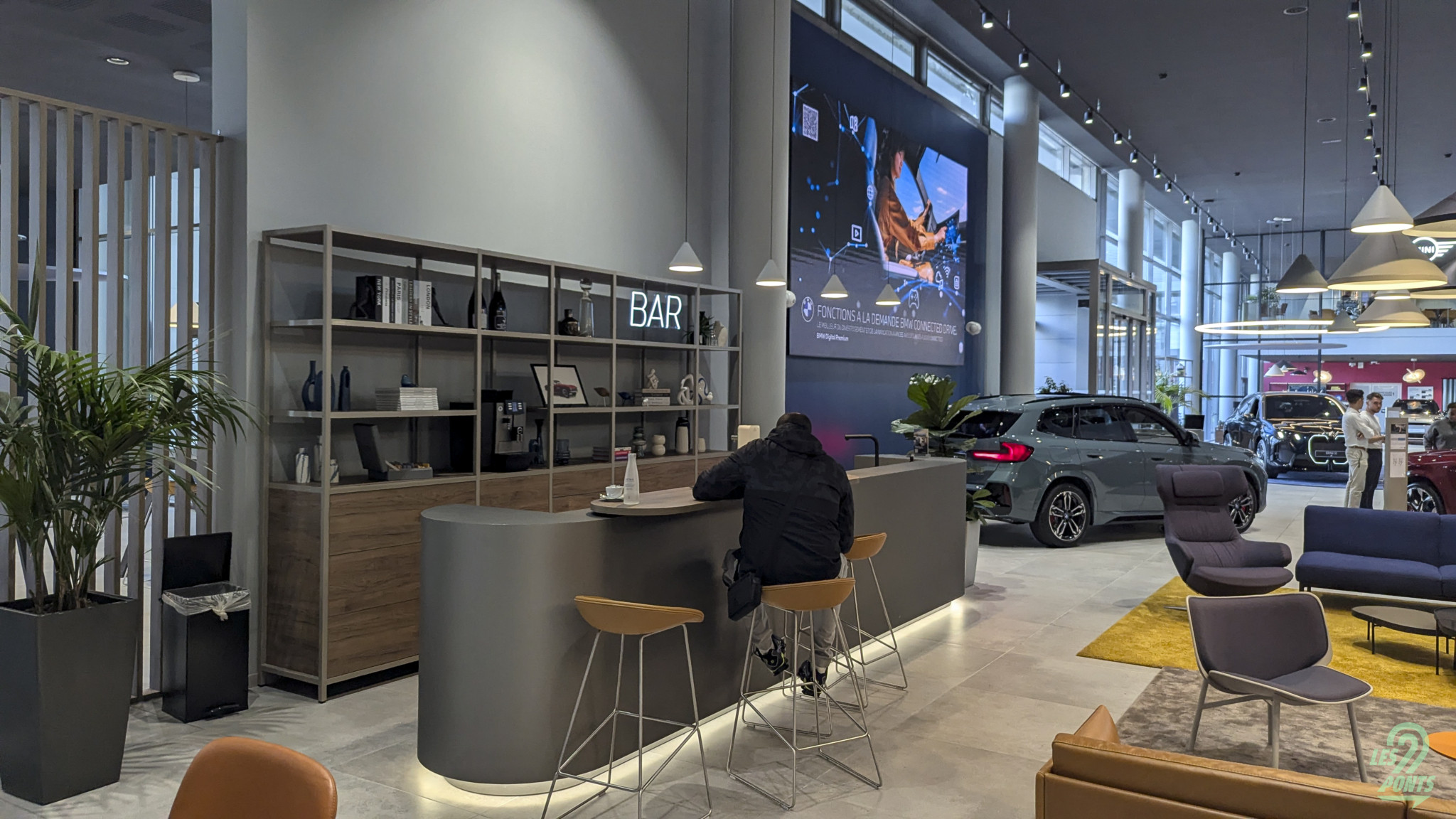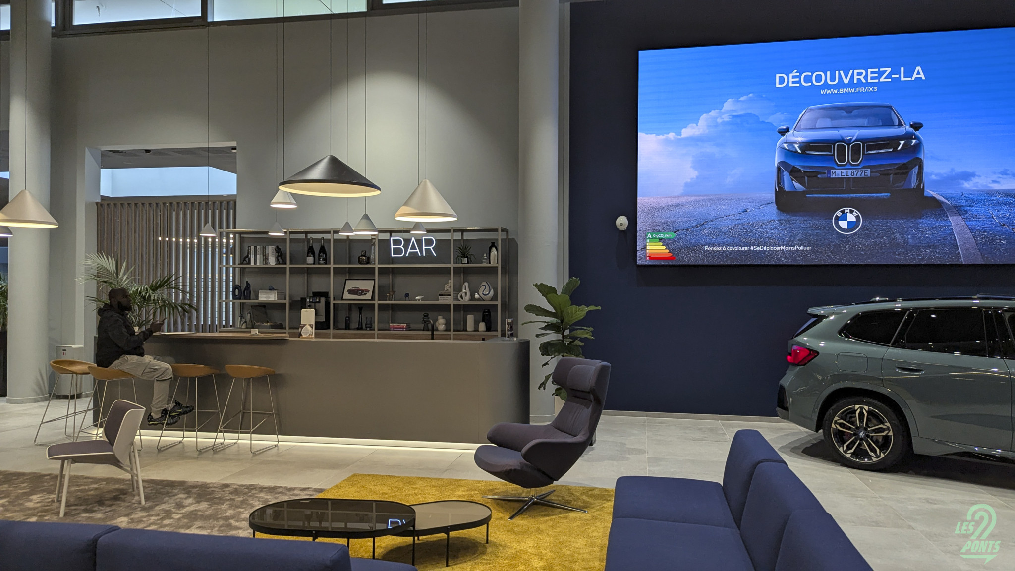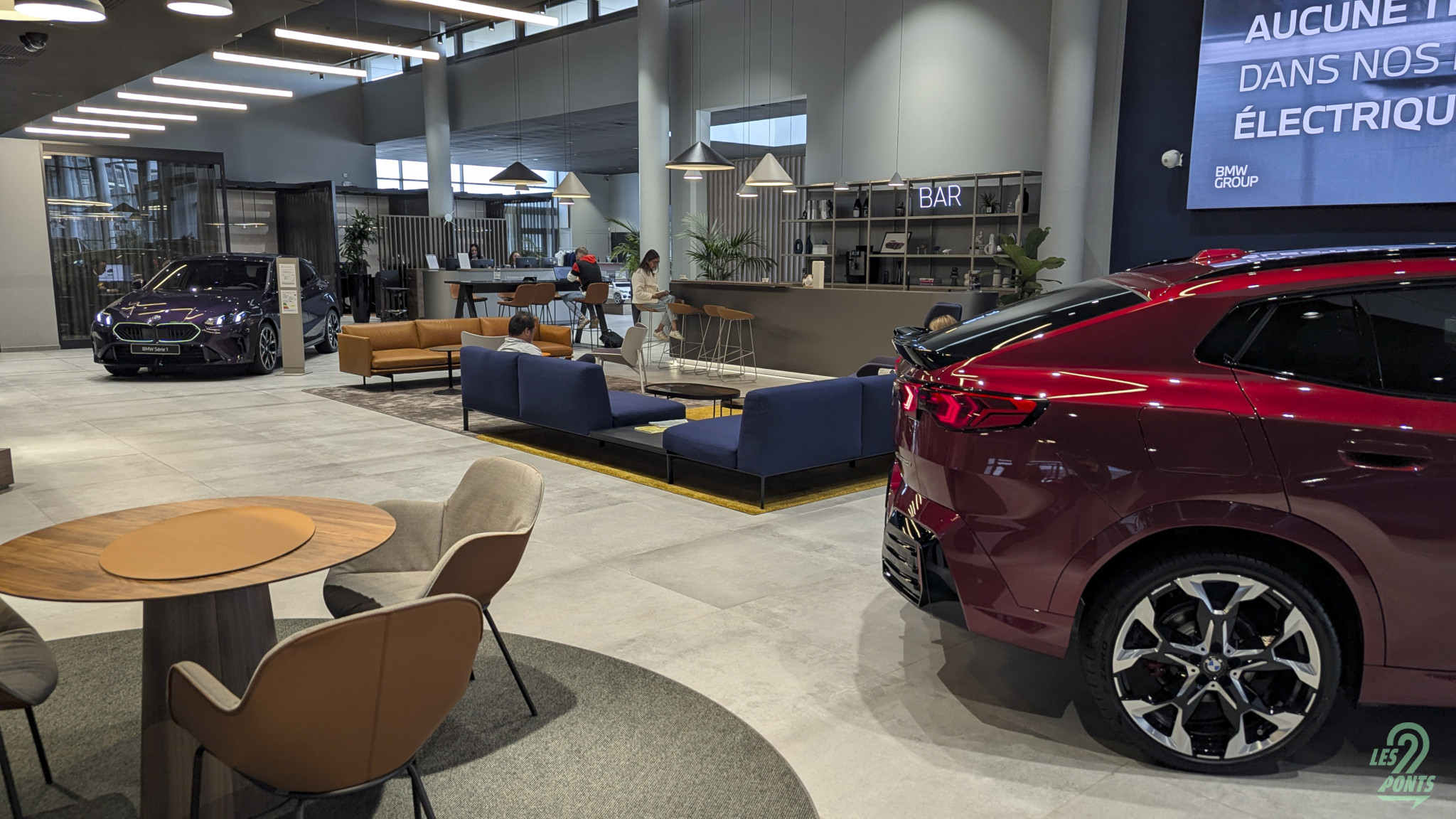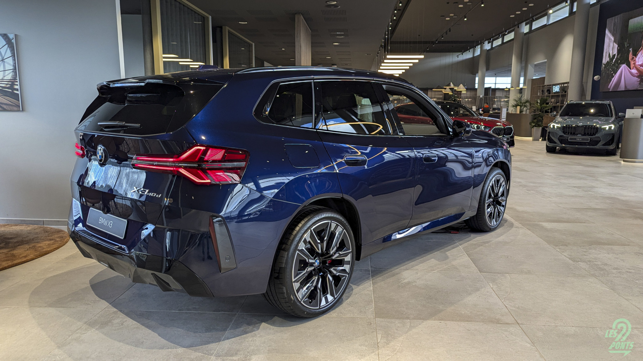 Avant-propos : Lors de la présentation du grand frère iX3, le premier de cordée de cette nouvelle trajectoire électrique, on était très prêts ! Trop prêts. On s’était alors rendus au showroom BMW Paris Vélizy (78), à quelques minutes du domicile de votre rédacteur en chef … Un échange sur Twitter avec un futur propriétaire de iX3 nous laissait à penser que le showroom intégrerait un écran géant pour retransmettre cet évènement clé pour la marque à l’hélice, mais point du tout ! Voilà alors la fausse route, le “faites demi tour dès que possible” de votre application GPS favorite. Quand la passion automobile, et la passion pour la marque BMW (on le confesse ici !) nous laisse parfois à un peu de naïveté : l’écran géant, c’était à priori pour les collaborateurs de BMW Vélizy, alors que nous ne sommes à priori pas encore internes à ce showroom récemment joliment rénové ! Faute de iX3 en vrai, à ce moment-là, voici quelques images de cette visite là … Mention spéciale au superbe X3 40d, son très idéal et récent six cylindres diesel, sa sellerie cuir Individual ; des 230i et 123 bien configurées et motorisées. Notez aussi l’évolution design du iX restylé, s’approchant davantage du X3 thermique.