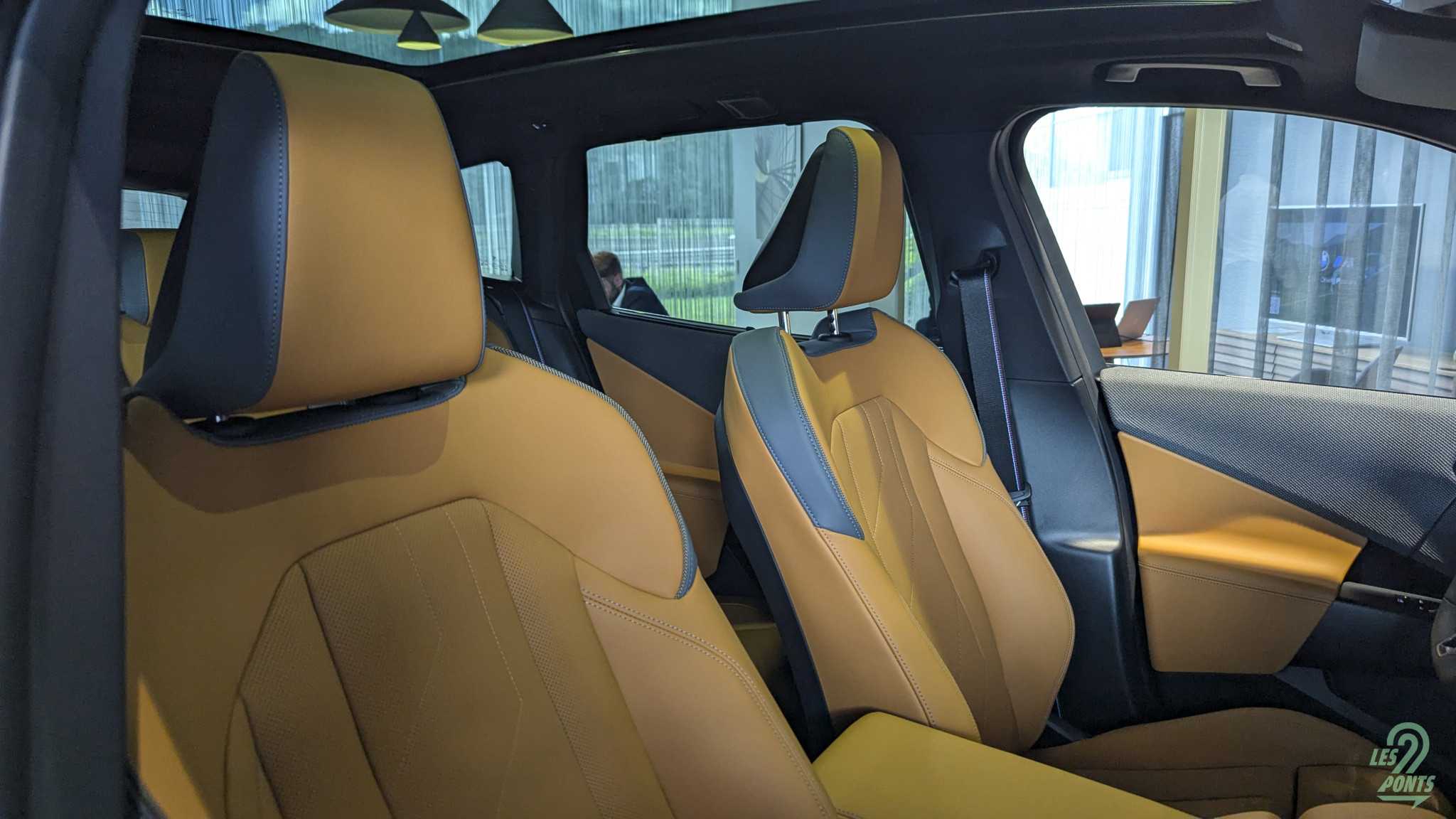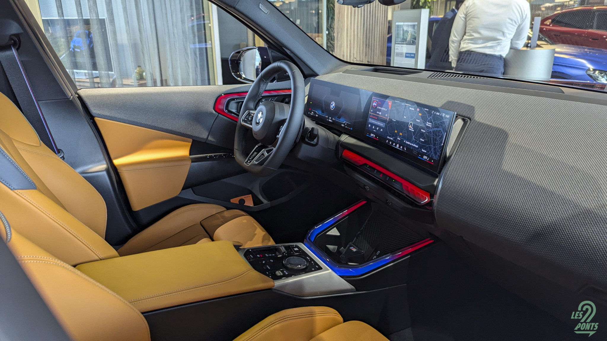 Oubliez tout ce que vous connaissez des intérieurs BMW, ou presque (iX3 exclu, bien sûr) ! L’intérieur dérive de celui de son grand frère, et montre en effet une nouvelle interprétation de design, appelée à se répandre sur le reste de la gamme, à la manière de la nouvelle signature lumineuse extérieure.
