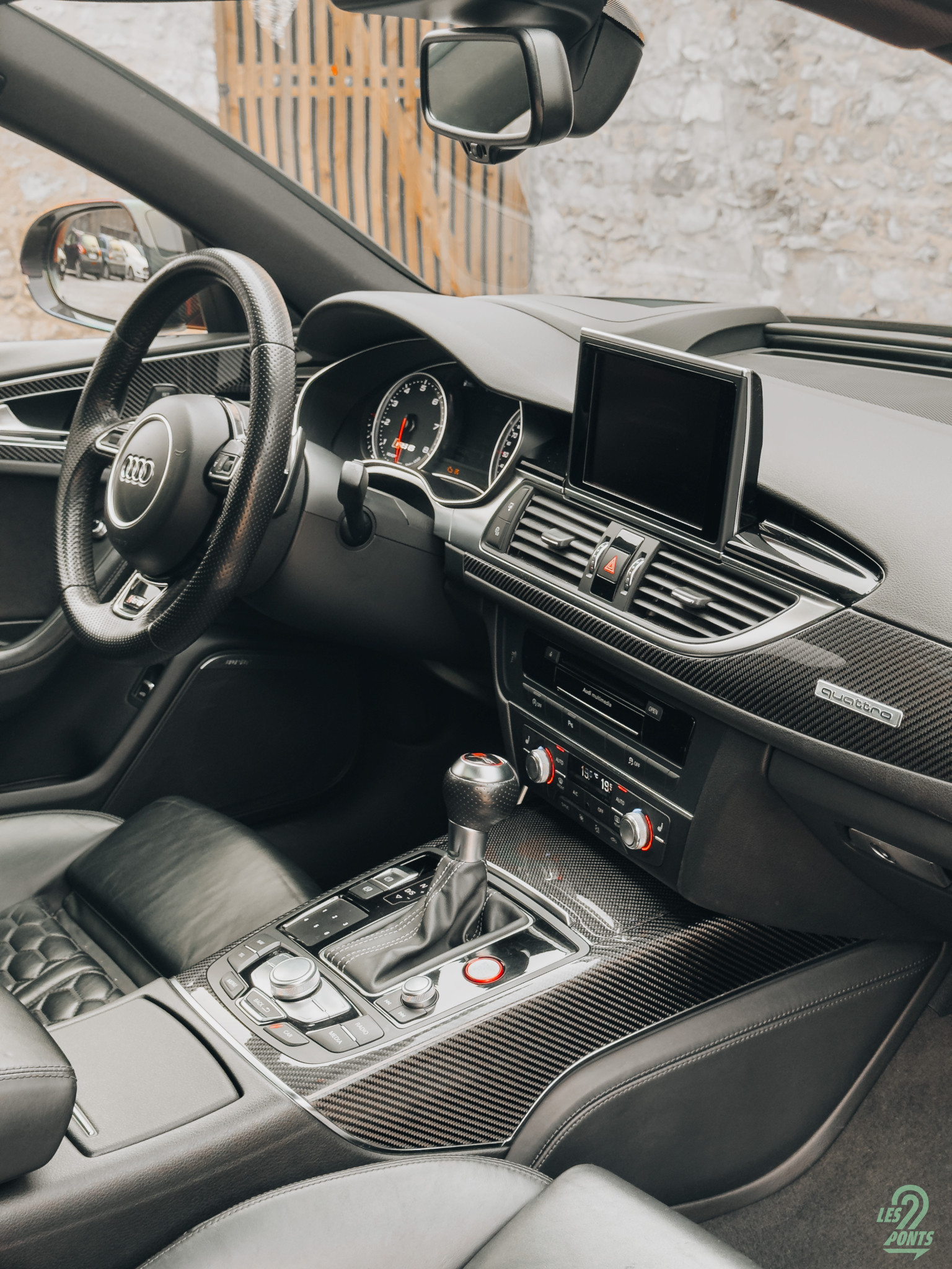 Sur le plan de la fiabilité, elle affiche un bilan globalement rassurant, à condition de sélectionner soigneusement son exemplaire. Une attention particulière doit être portée aux véhicules importés, notamment d’Allemagne, dont le kilométrage n’est pas toujours parfaitement traçable, ainsi qu’aux modèles ayant fait l’objet de reprogrammations moteur excessives. Si certaines optimisations restent compatibles avec la fiabilité d’origine, des modifications trop poussées peuvent entraîner des désagréments : turbos fragilisés, sifflements, pertes de puissance, consommation d’huile anormale ou usure prématurée des freins. Comme toute sportive de ce calibre, la RS6 sollicite fortement ses consommables : l’état des pneus, des freins et des éléments de suspension devront être examinés avec soin.