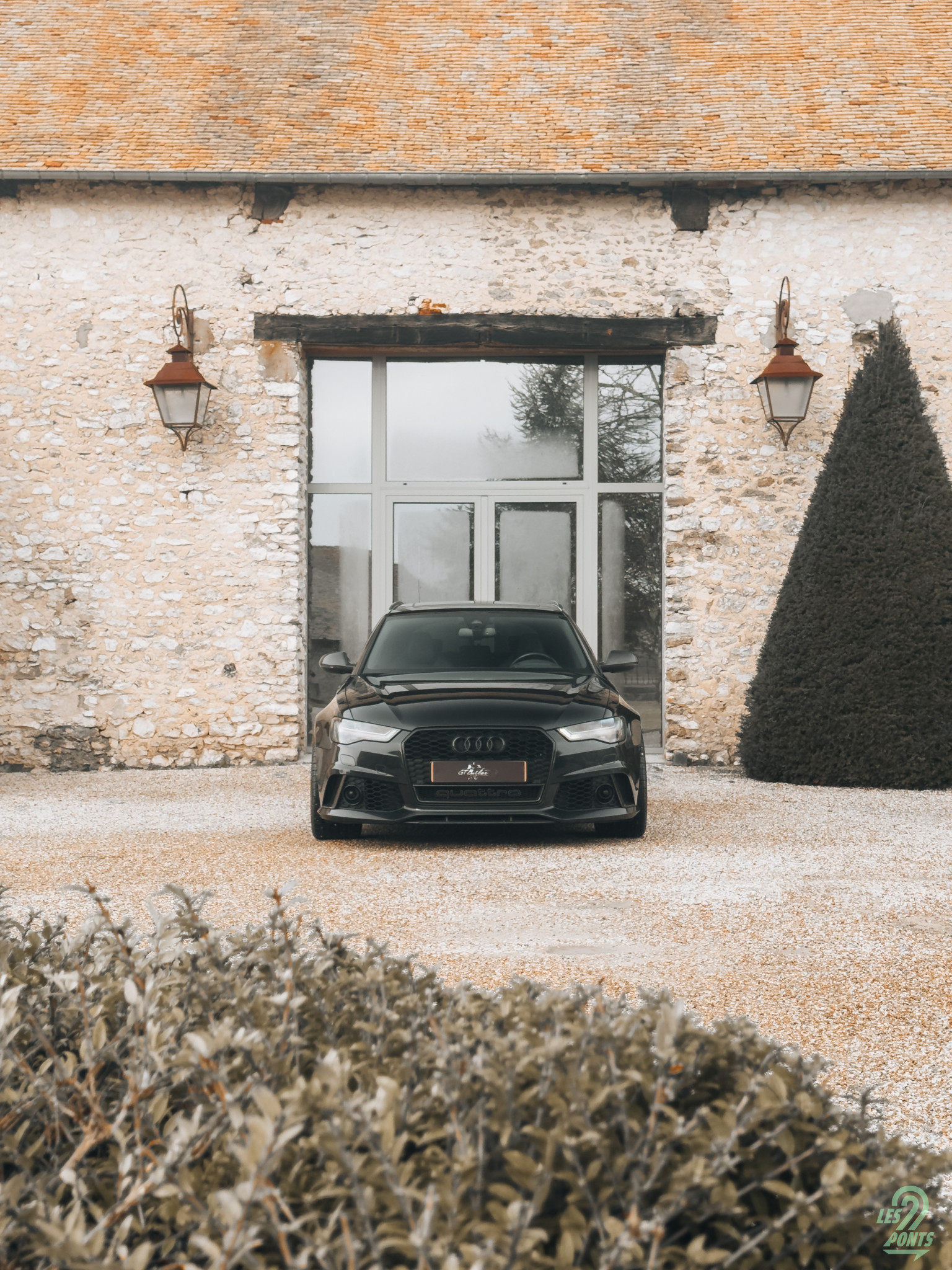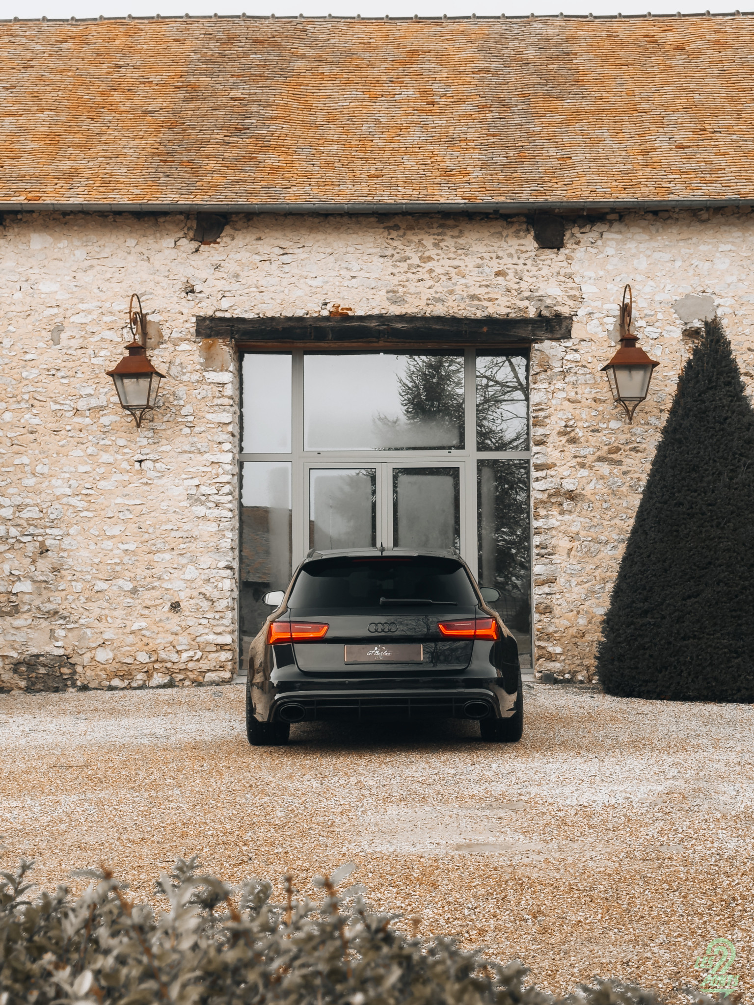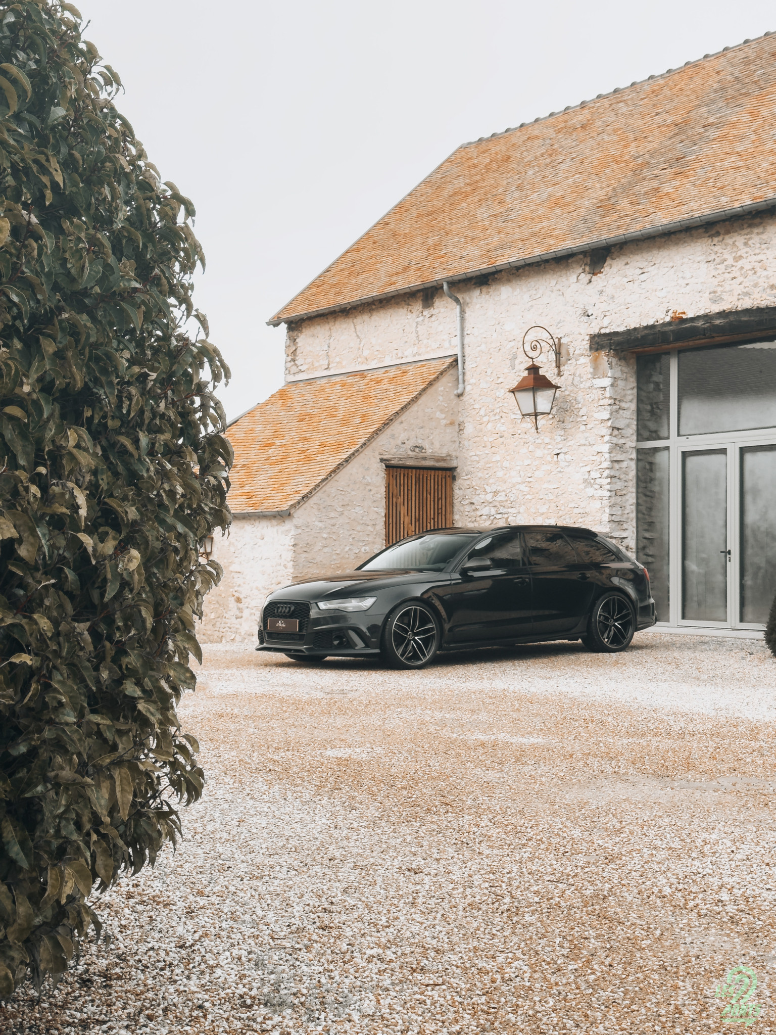 Aujourd’hui, on se retrouve avec Maxime, le gérant de GT Butler Paris, situé dans les Yvelines à Richebourg. Nous sommes dans un domaine calme et somptueux. Devant moi, une Audi RS6 Avant (C7), dans sa teinte Noir Mythic avec le Shadow Line. Quand on la regarde, on retrouve bien la philosophie RS depuis la mythique RS2 : un break, oui, mais un break qui impose le respect.