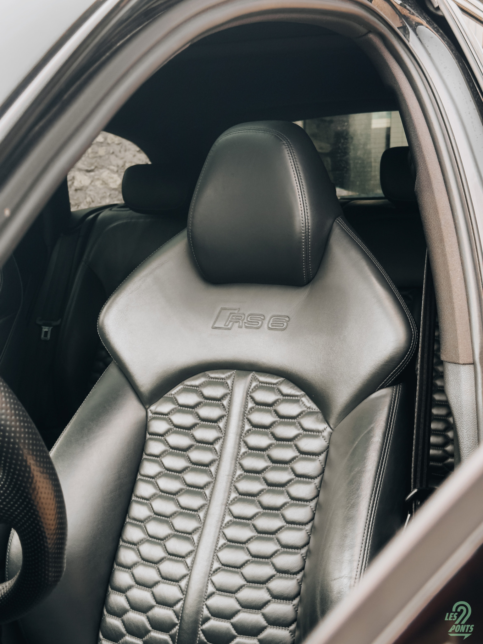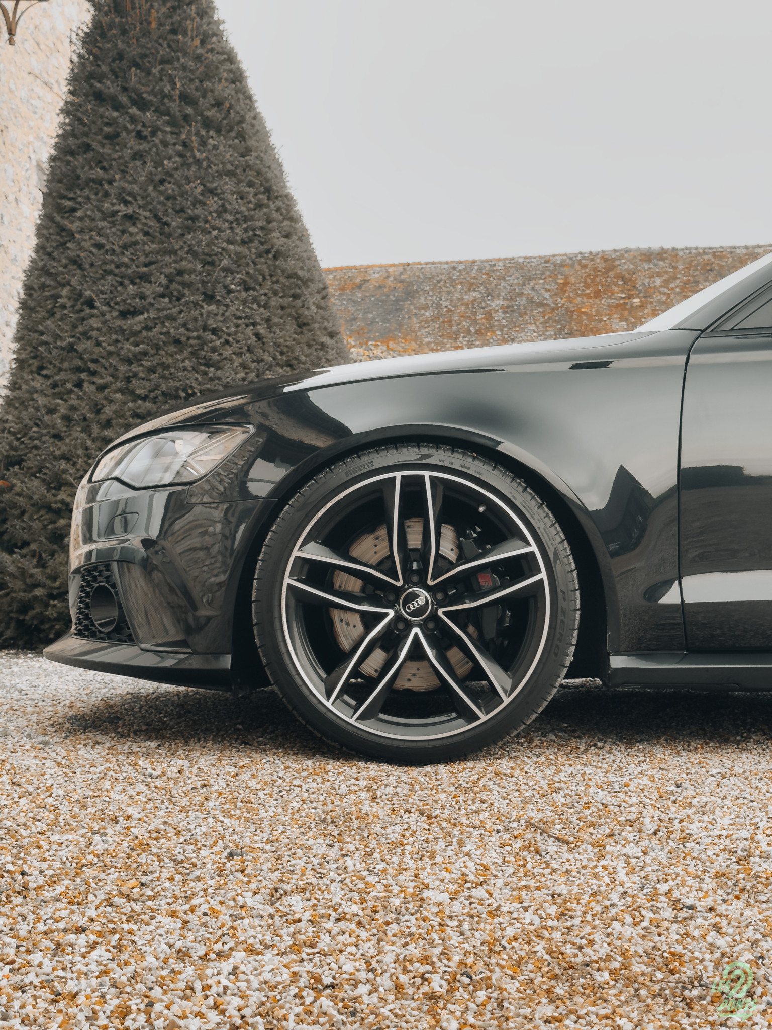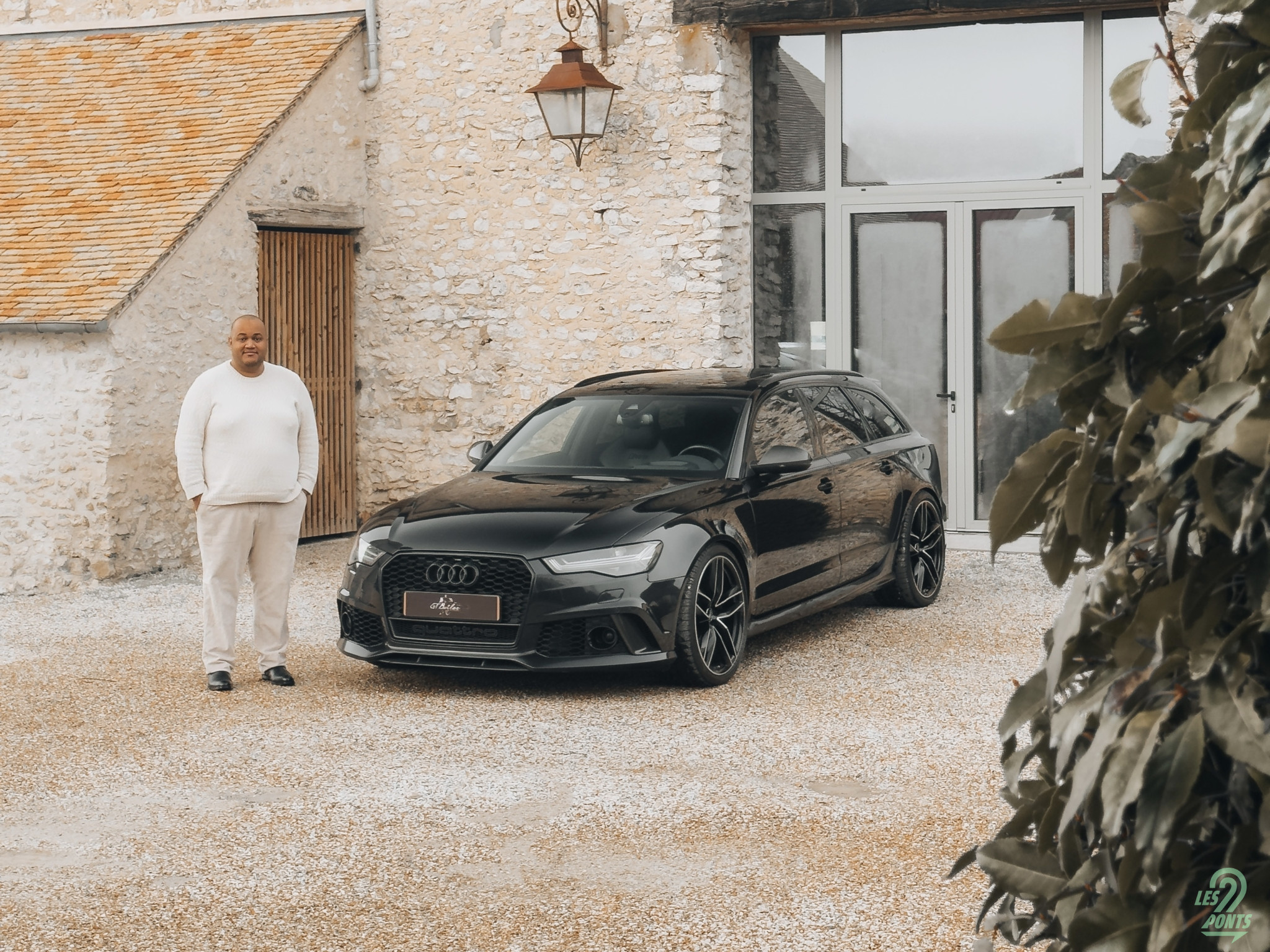 Aujourd’hui, on se retrouve avec Maxime, le gérant de GT Butler Paris, situé dans les Yvelines à Richebourg. Nous sommes dans un domaine calme et somptueux. Devant moi, une Audi RS6 Avant (C7), dans sa teinte Noir Mythic avec le Shadow Line. Quand on la regarde, on retrouve bien la philosophie RS depuis la mythique RS2 : un break, oui, mais un break qui impose le respect.
