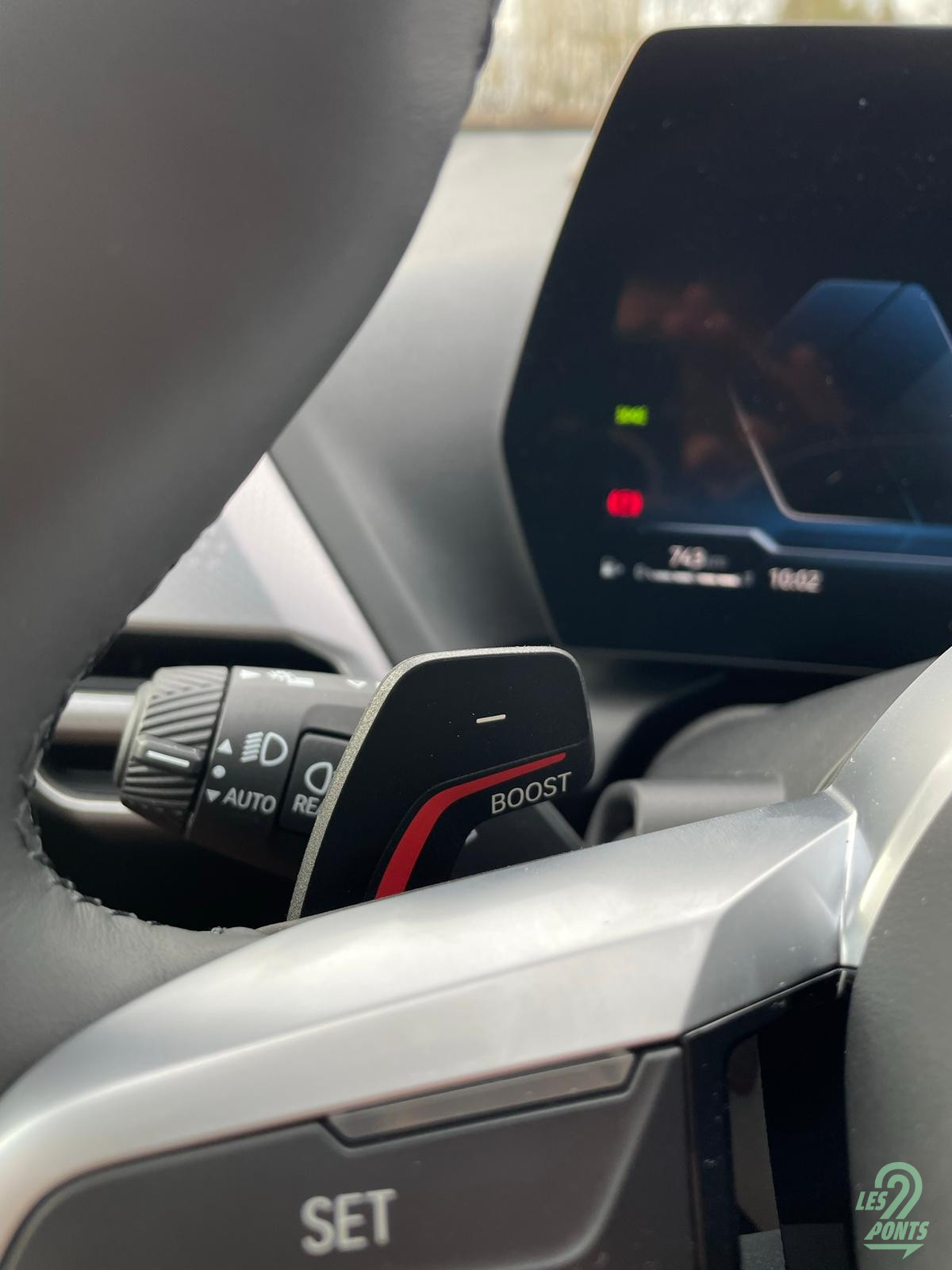 Le sélecteur de la boîte de vitesses automatique – disponible de série sur toutes les motorisations, adieu la boite mécanique – est on ne peut plus discret. Tellement discret que les non-initiés pourraient avoir à le chercher un peu, lors des premiers tours de roues. Néanmoins, cette nouvelle gâchette s’intègre parfaitement à la console centrale.