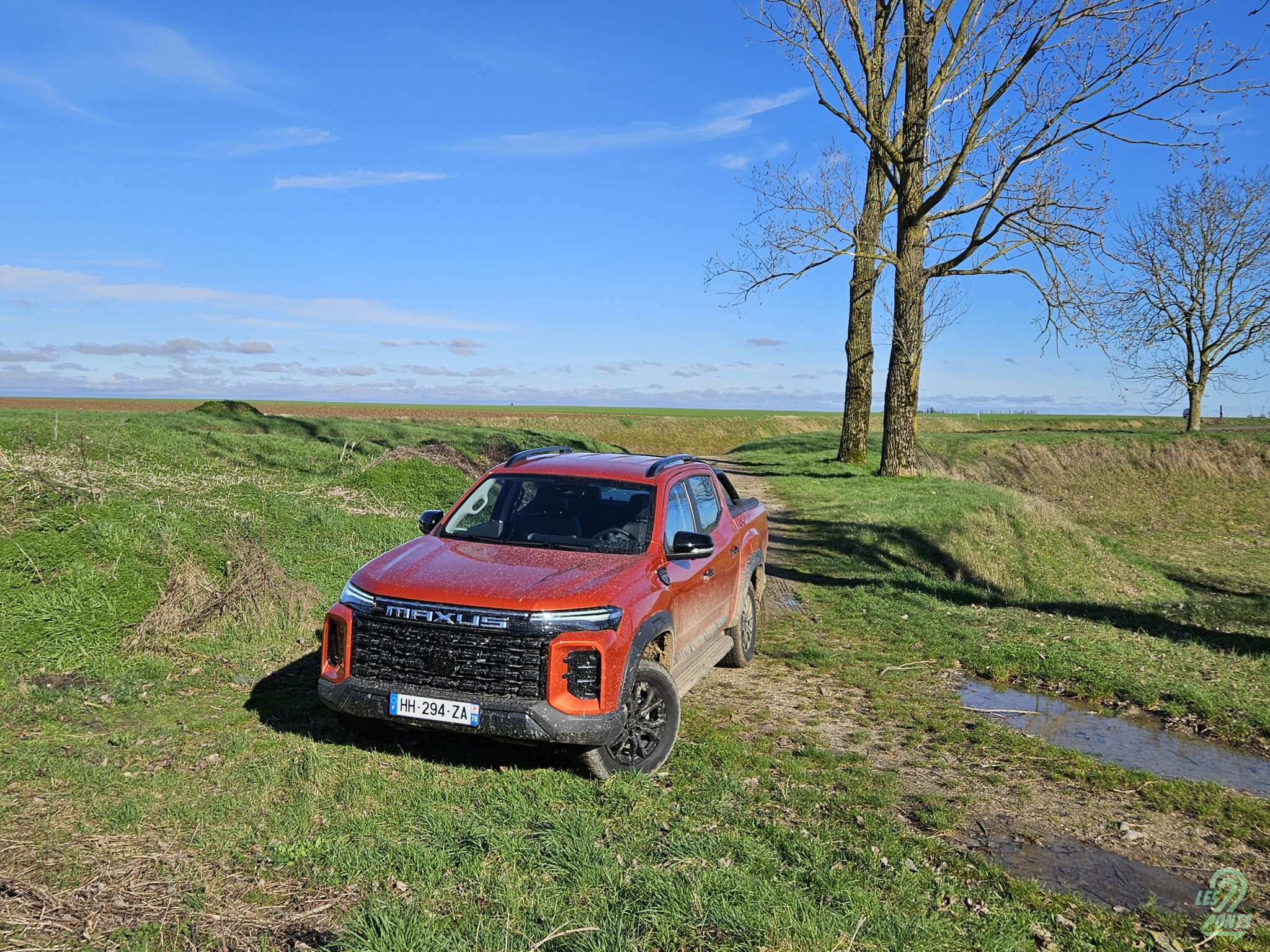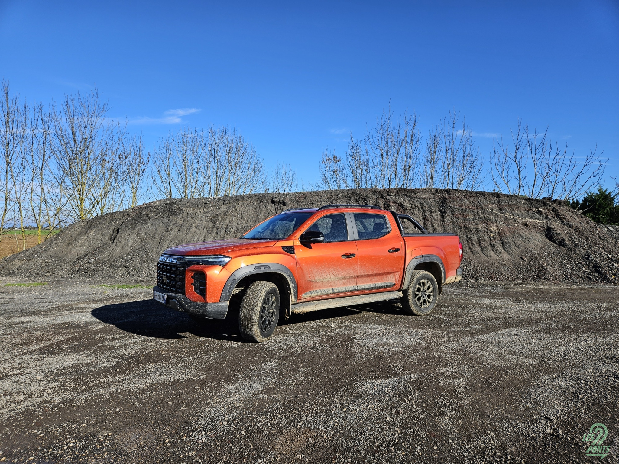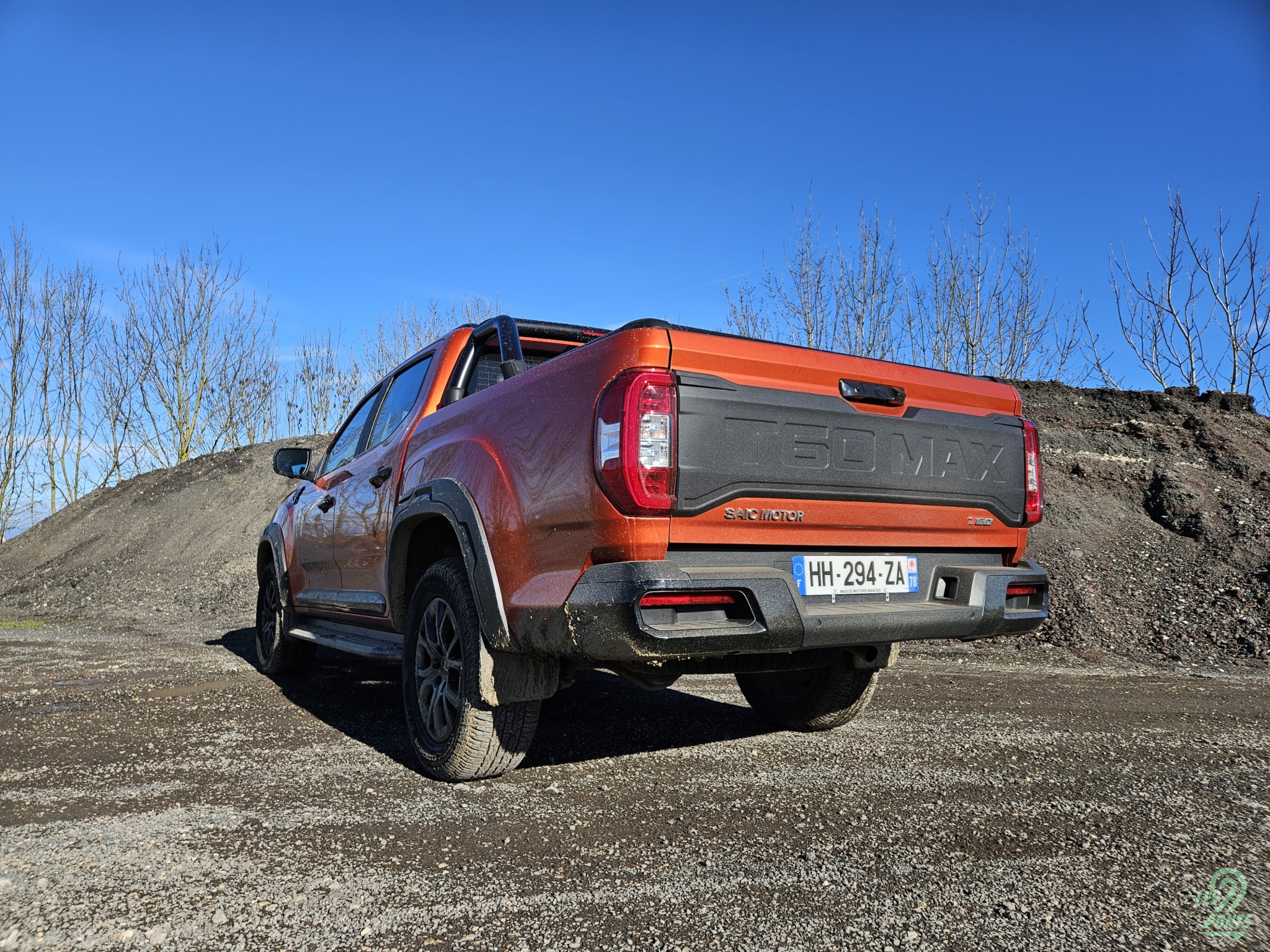En revanche, pas besoin de pianoter pour passer de la propulsion au mode quatre roues motrices. Une molette de commande permet de le faire rapidement. Notre essai est intervenu après de grosses précipitations, il convenait donc de tester le T60 Max dans la boue. Presque un choix osé, tant les pneus Yokohama Geolandar A/T G015 ont semblé limités. Pour leur défense, ce sont des montures toutes saisons adaptées à un usage mixte plus qu’à du tout-terrain. Peut-être pour cela qu’il était nécessaire d’activer les quatre roues motrices à chaque gros passage de boue, et surtout de désactiver les aides. Dans le cas contraire, l’électronique est bien trop intrusive, et la puissance est bien trop muselée, même en sollicitant franchement l’accélérateur. Sur ce point, un Isuzu D-Max est bien plus efficace. La garde au sol du Maxus montre aussi ses limites sur les reliefs. S’il finit par passer, attention au fragile cache plastique sous le moteur.