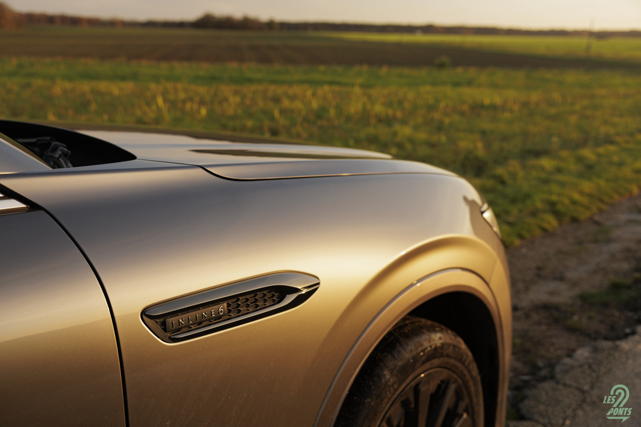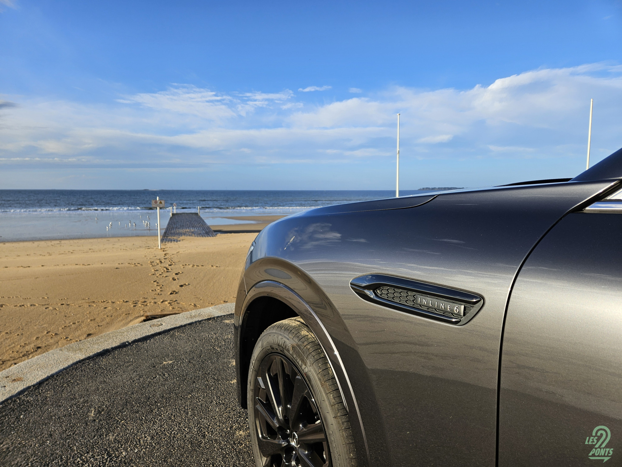 Détail qui n’en est pas un : les essuie-glaces couvrent la totalité de la vision conducteur. Pratique, davantage que le liquide lave-glace sortant des balais et envoyé directement en dehors du pare-brise. Avec sa finition Homura Plus, notre modèle d’essai se présente dans une teinte Machine Gray presque regrettable, étant donné les couleurs rouges disponibles au catalogue. Les jantes noires en 20’’ n’apportent pas de contraste. Si nous pouvons lui reprocher son manque d’extravagance, il ne fait aucun doute que cette configuration extérieure correspondra aux attentes de nombreux automobilistes français. Un semblant de discrétion, donc. Seule la calandre vient différencier notre diesel de la version hybride rechargeable. Notre auto étrenne fièrement un badge « Inline 6 » entre les portes et les ailes avant. Un détail appréciable dans un monde automobile (européen) tourné vers le downsizing des moteurs. Un six cylindres, et “mazout”, ça se fête !