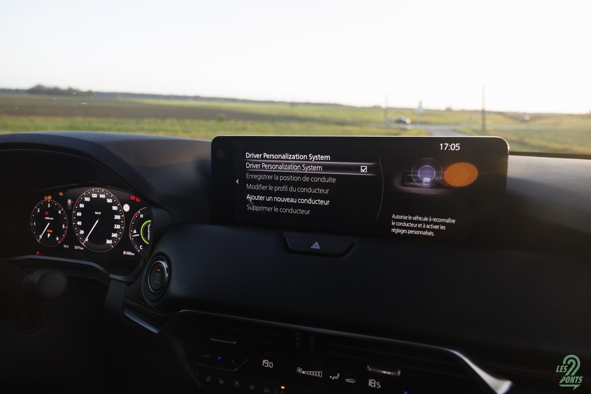 CX-60 et CX-80 ont inauguré un système de pré-réglage de position de conduite : suite à l’analyse conducteur d’une caméra, un réglage volant & siège est proposé.