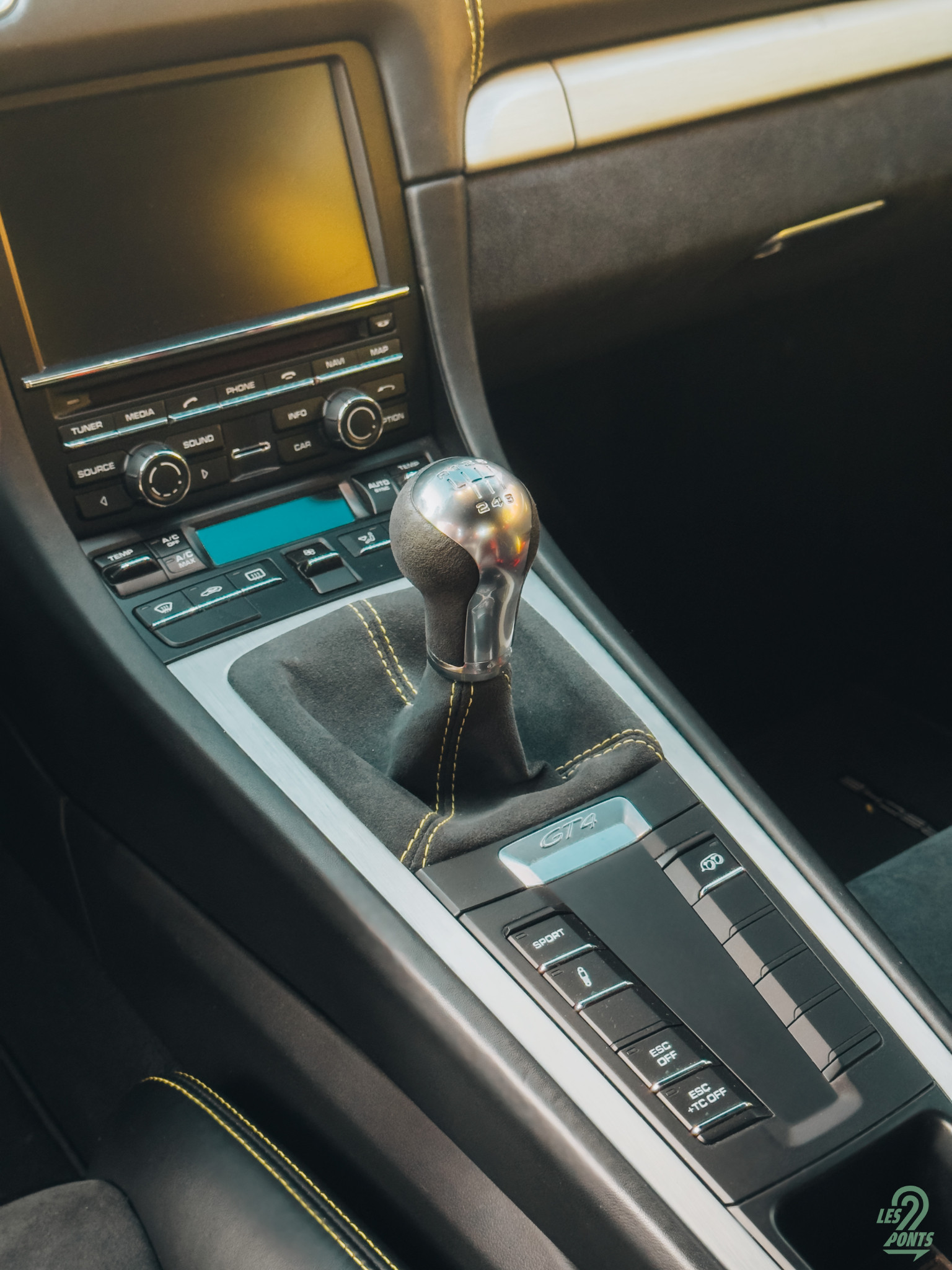 Sur le tunnel central, le levier de vitesses mêlant alcantara et aluminium attire immédiatement mes doigts. Ce modèle n’est disponible qu’en boîte mécanique à 6 rapports et ne possède pas la PDK, présente sur la génération suivante. Autour, les boutons dédiés à la suspension, à l’échappement, au mode sport et au contrôle de traction sont regroupés de manière intuitive, chacun est facilement identifiable. Je remarque que le soleil est sur le point de se coucher, comme s’il me donnait le signal de départ pour cet essai.