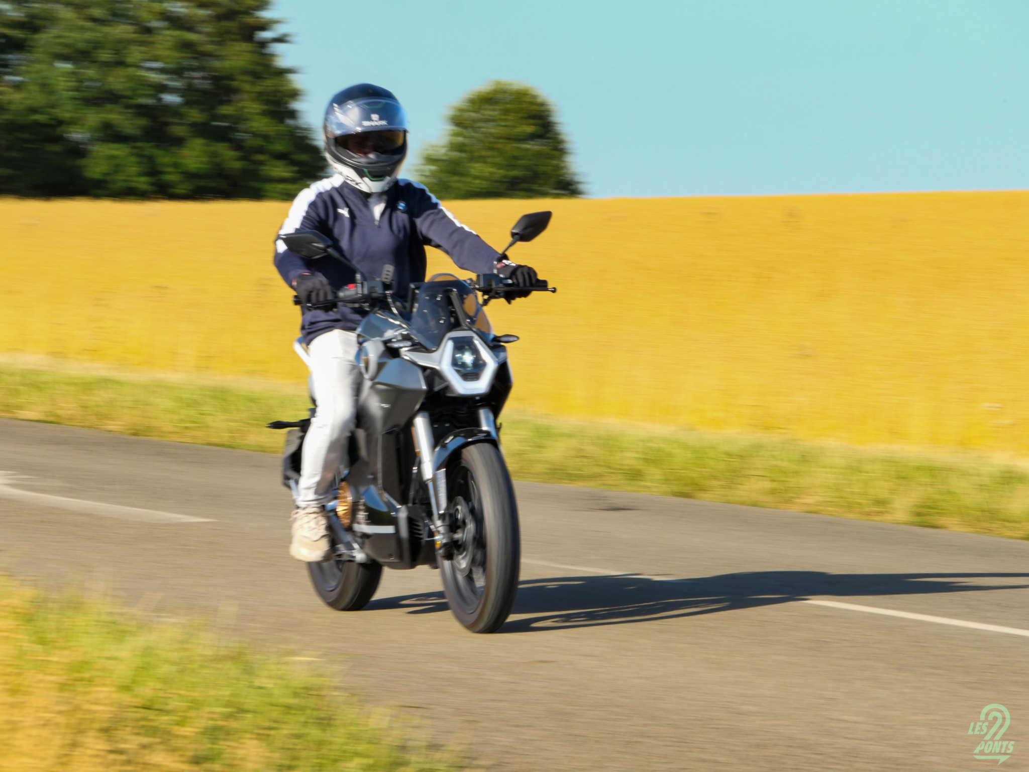 Il faudra d’ailleurs se rapprocher des hautes vitesses pour sentir une différence d’accélération entre les trois modes. Au démarrage, la puissance semble quasiment identique jusqu’à 40 km/h. Il est facile de surprendre plus d’un motard, bien que les plus joueurs – et compétents – n’auront aucun mal à effectuer les meilleurs passages de rapport pour s’éloigner au prochain feu rouge. Au final, pendant les premiers mètres, seul un scooter électrique BMW CE-02 nous aura laissé sur place. Le mode Eco permet déjà de tutoyer les 80 km/h. Il faudra donc opter pour le Normal pour atteindre les trois chiffres. Sans surprise, les reprises sont optimales peu importe la vitesse. Le changement des modes de conduite se fait au doigt, permettant de se sortir d’une situation dangereuse en un clin d’œil avec le mode Sport passé. Pas de doute, on se prend rapidement au jeu des dépassements immédiats.