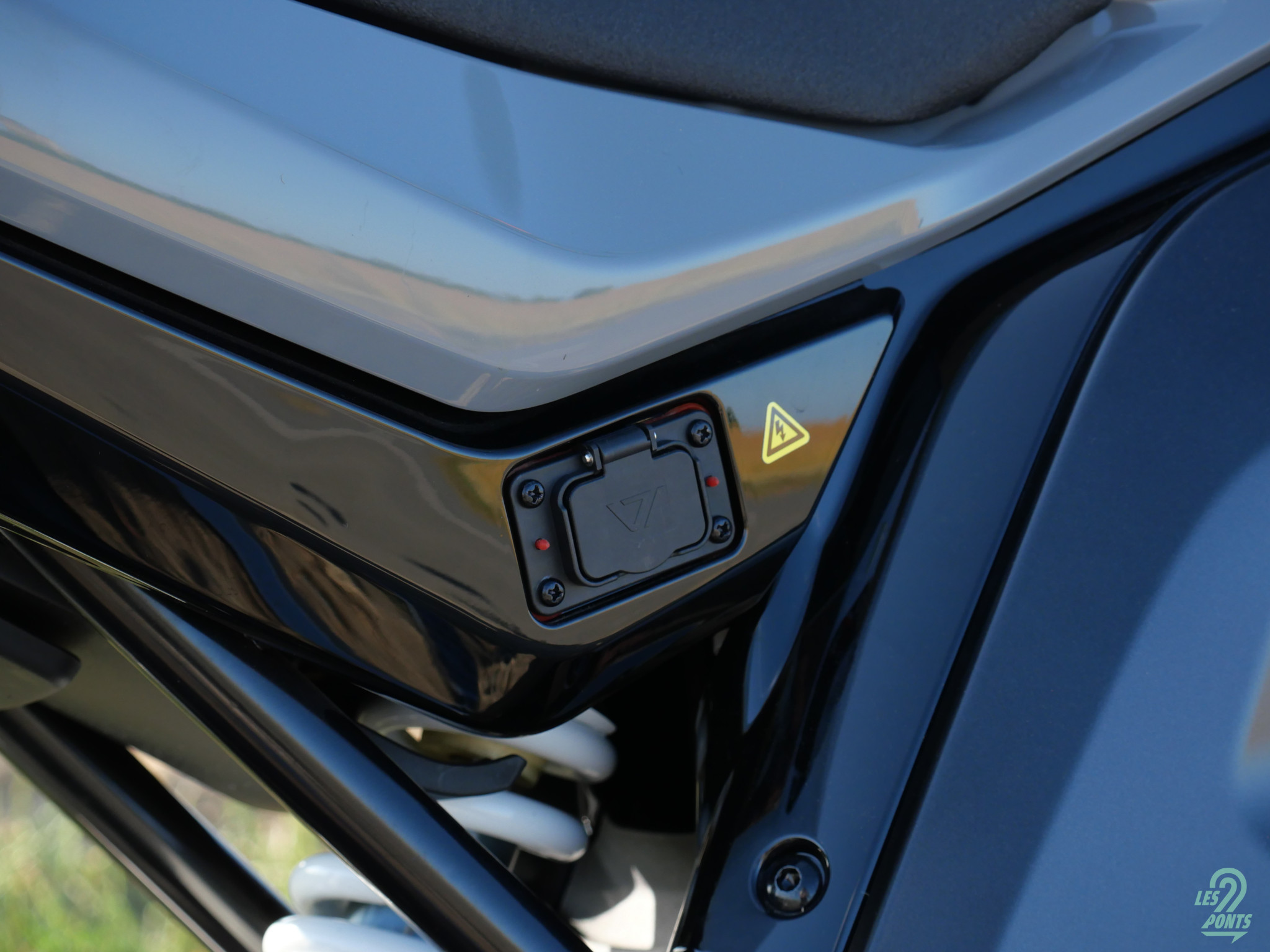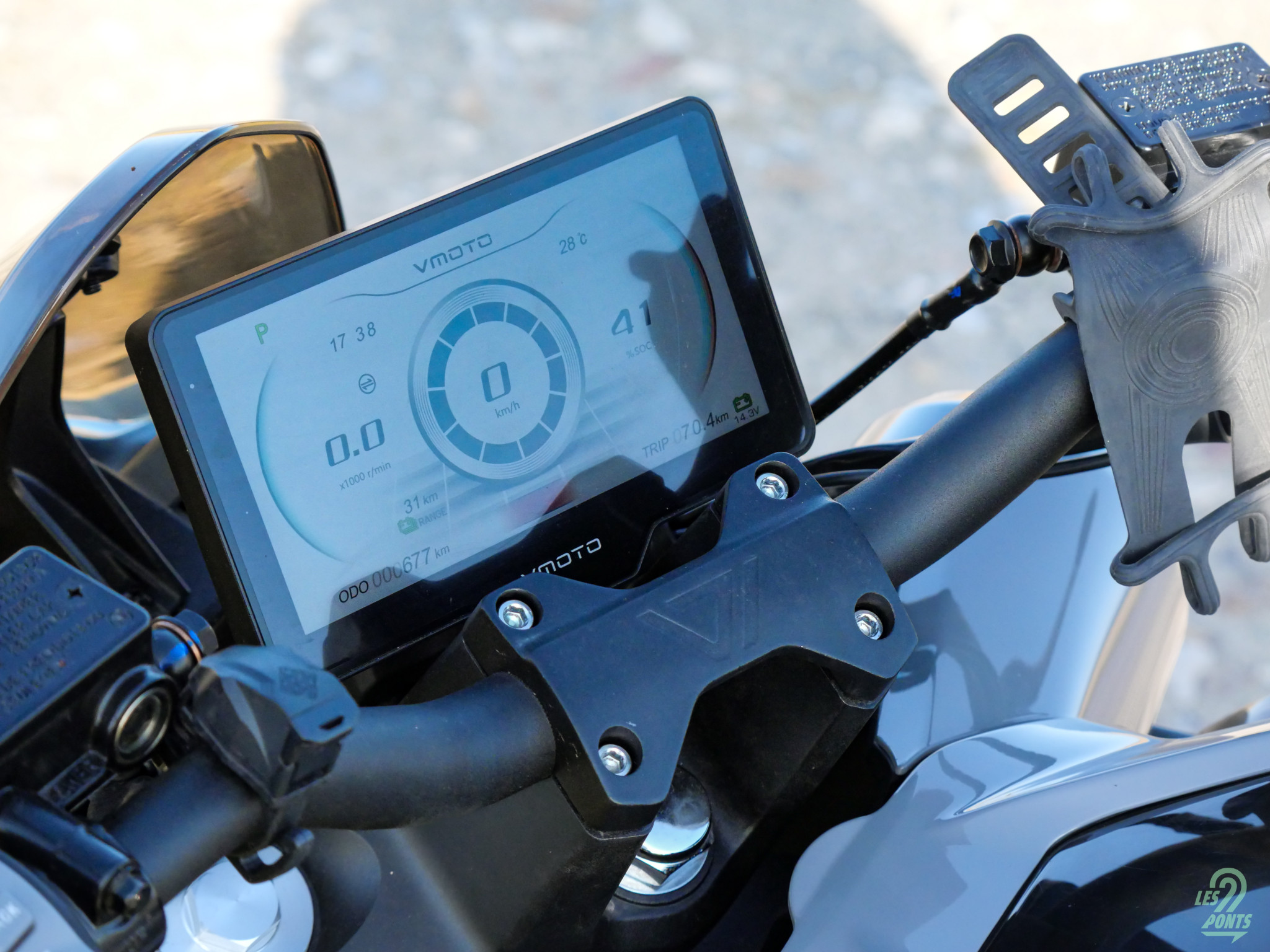 Seul le support de plaque, positionné derrière la roue, pourrait surprendre. Dommage de ne pas l’avoir placé sous la selle arrière. En la présentant à un entourage varié, de motards comme de piétons, la réaction est à chaque fois unanime : le look sportif fait son charme, au contraire du démarrage. Electrique oblige, c’est par des petites tonalités aigües que la Stash annonce son déverrouillage, puis son démarrage. On pourra lire sur l’ordinateur de bord le fameux “Ready” que l’on connaît sur les autos… Celui-ci est évidemment multifonctions, avec deux interfaces de conduite proposées et la possibilité d’y connecter son smartphone. Il est d’ailleurs possible de dupliquer l’écran, même pour voir un match de l’horrible Coupe du monde des clubs de football (!). S’il est aisé de passer du mode nuit au mode jour, régler l’heure impose de se faire aider d’un professionnel du paramétrage…