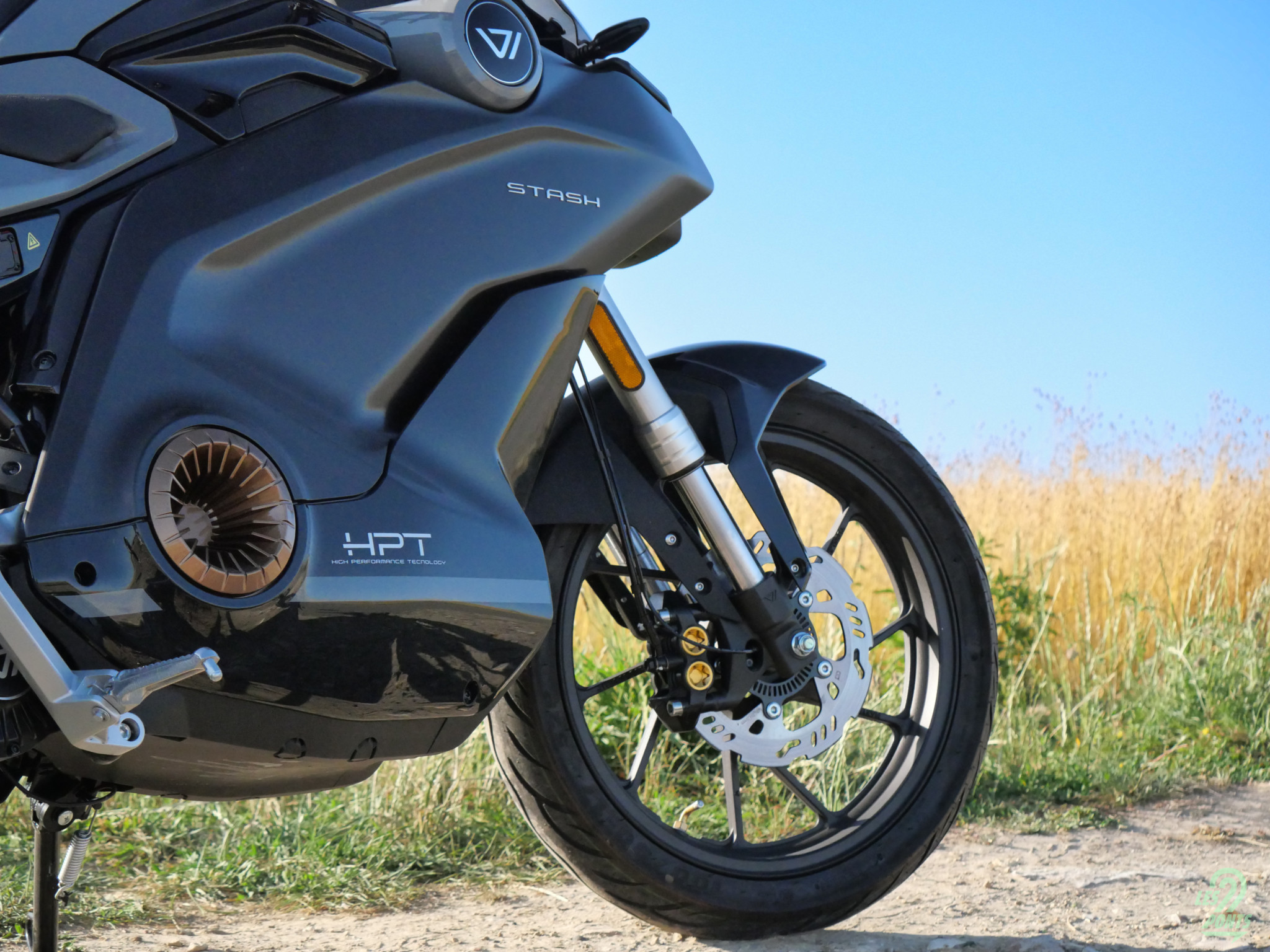 Notre exemplaire presse n’était pourtant pas au top de sa forme, nous y reviendrons. Il faut dire que VMoto est encore en pleine transition. La marque sino-australienne a récemment conclu son désaccord juridique avec Super Soco. La filiale tricolore est opérationnelle depuis septembre 2023 et les derniers deux-roues badgés de l’ancien logo sont actuellement déstockés. La Stash se présente comme « le modèle phare et particulièrement attendu de la marque, qui compte bien s’imposer comme la nouvelle référence sur le marché de la moto électrique urbaine performante. » Cette formule, établie par le flag-ship store VMoto de Paris, offre une bonne transition à la description esthétique que nous pouvons faire de la Stash.