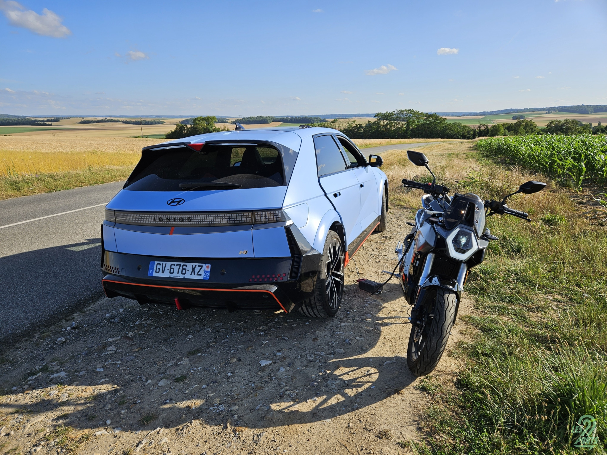Sachez que nous avons rechargé cette VMoto Stash avec la prise domestique installée sous la banquette arrière de la Hyundai Ioniq 5 N !