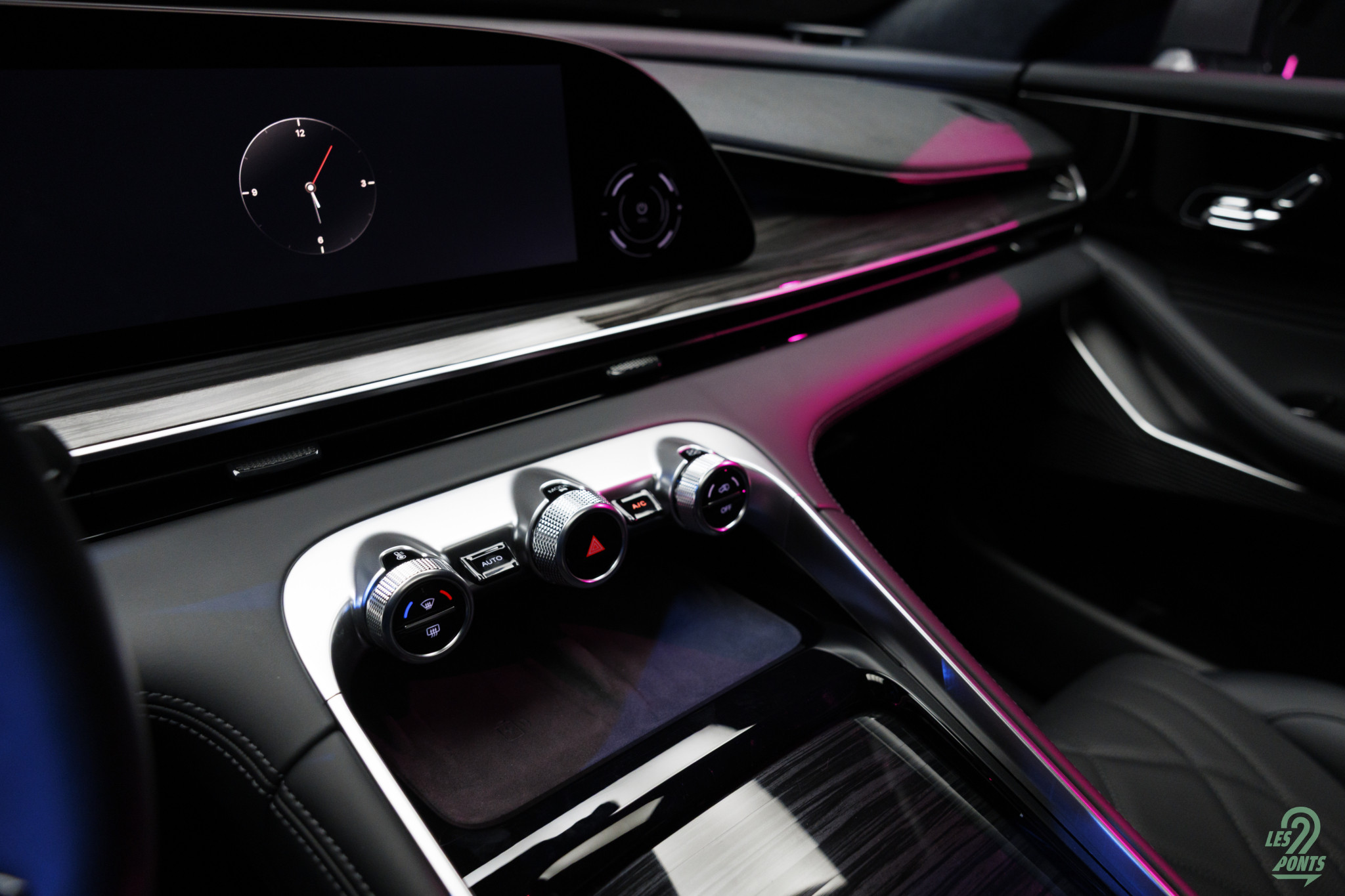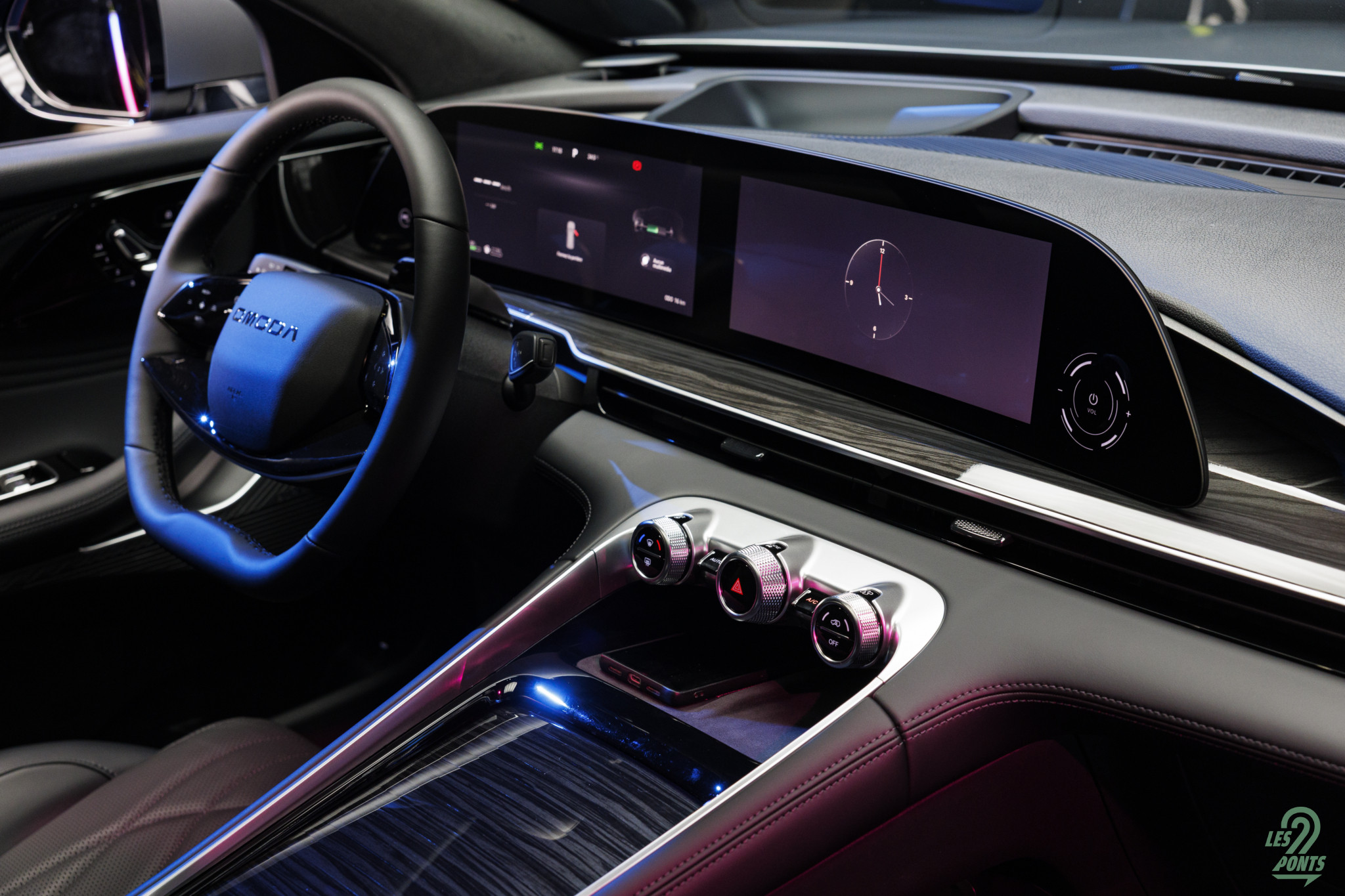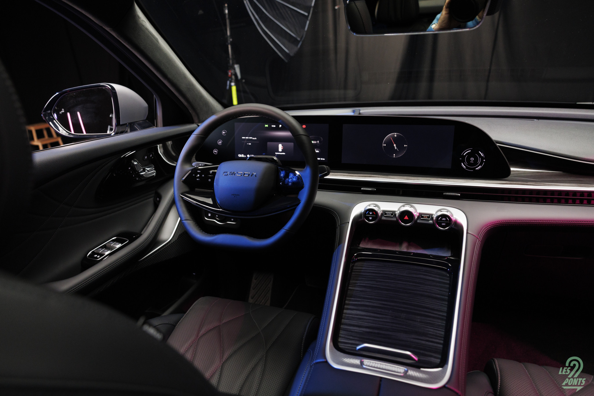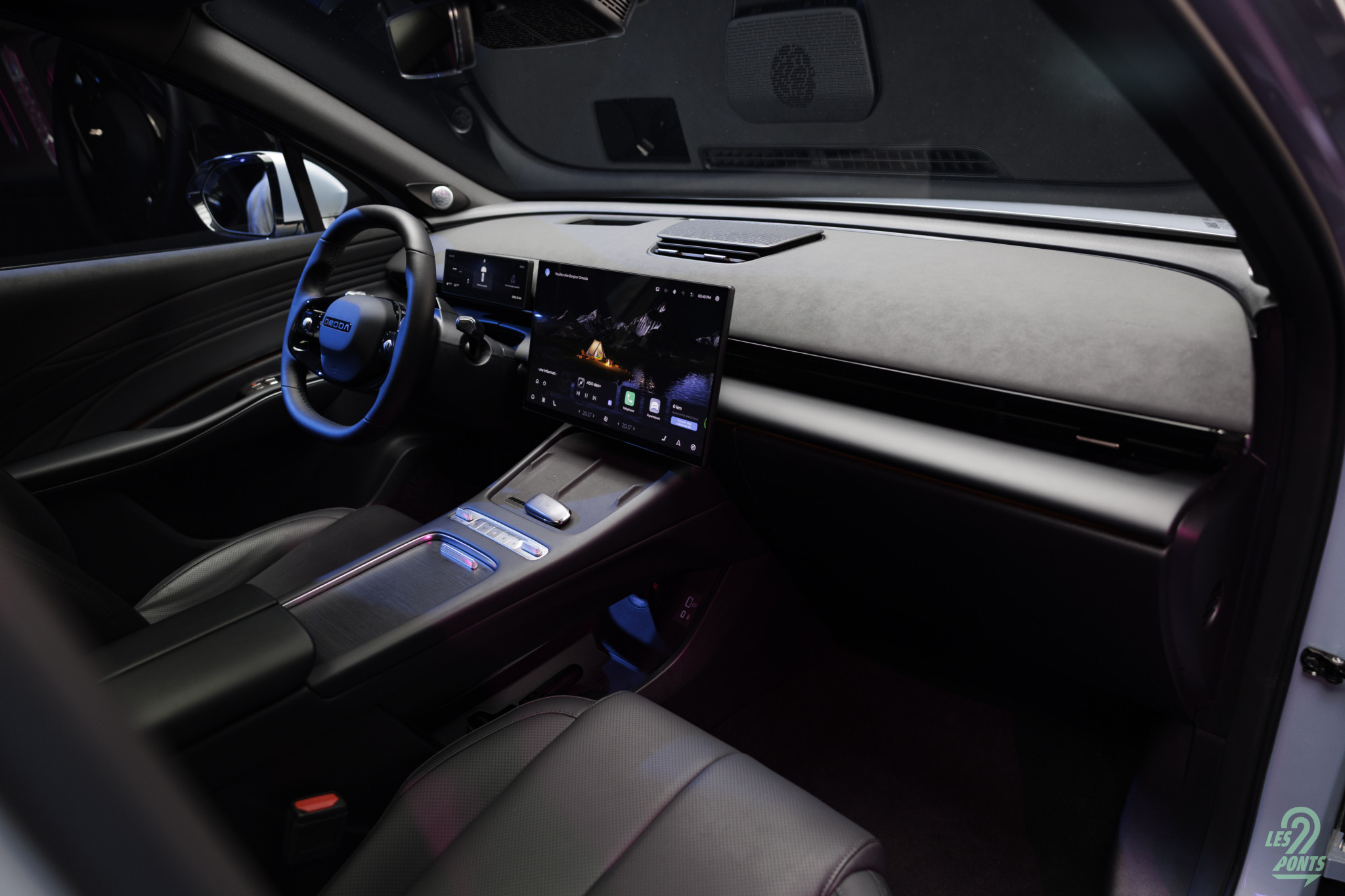 Et quelle jolie découverte que l’intérieur ! Ici on retrouve de chouettes inspirations également : des commandes tactiles à gauche de l’écran conducteur façon Cadillac Lyriq (!), et une ambiance intérieure singeant les premiums allemands avec un côté plus épuré. Une démarche qui rappelle en son temps la Kia Stinger, en voilà une qui voulait grignoter de la BMW au petit déjeuner ! Une certaine ressemblance avec les intérieurs Genesis également, avec notamment une succession d’écrans et une imposante console centrale.