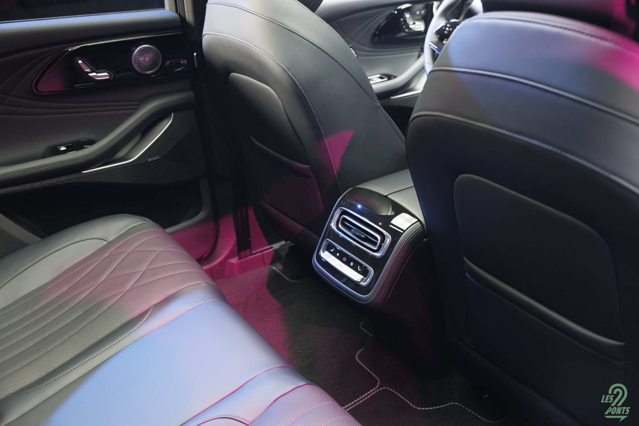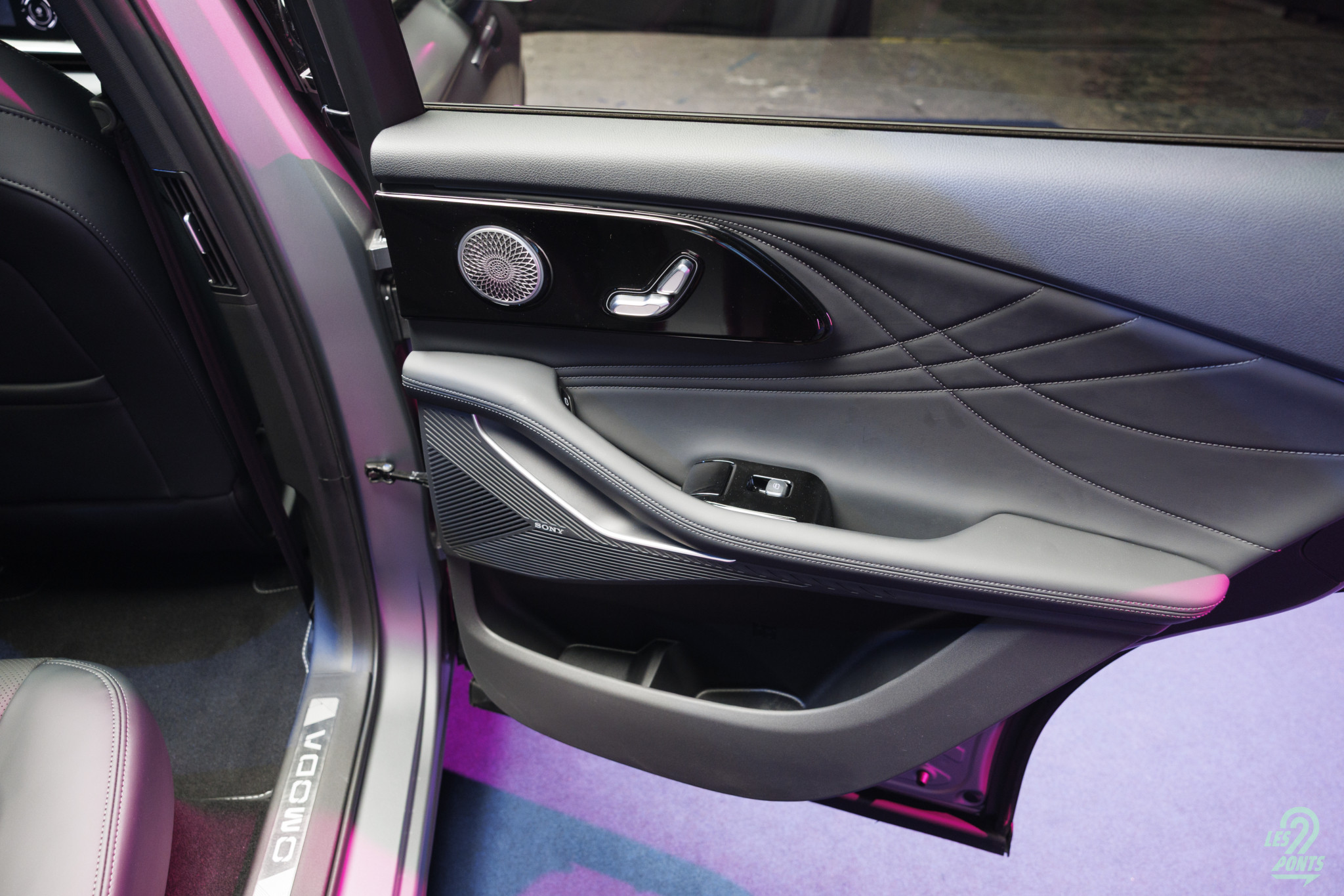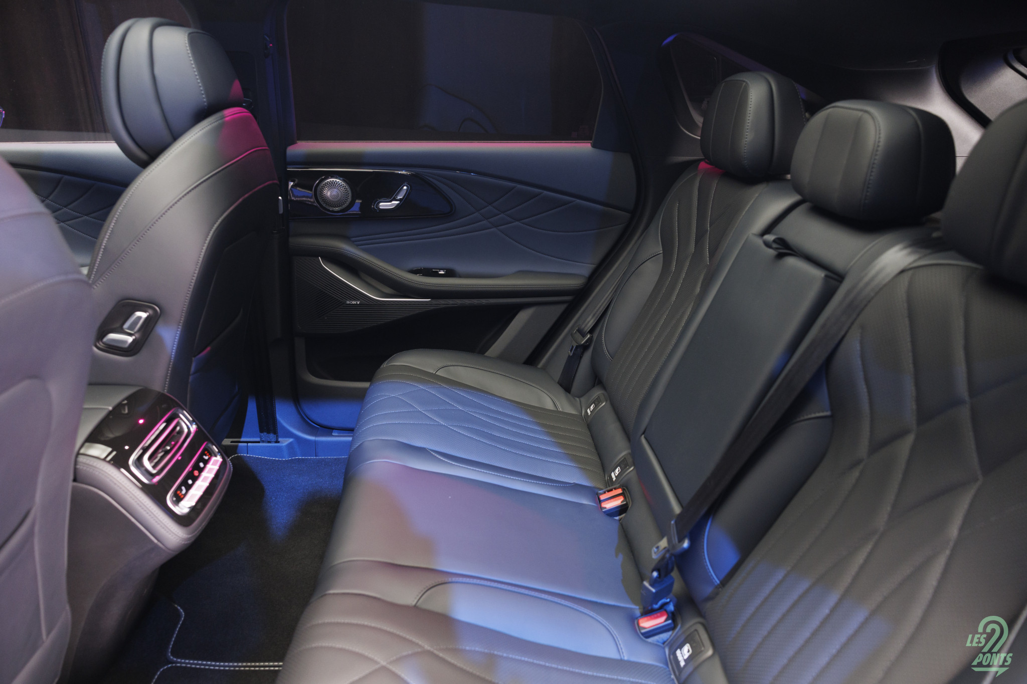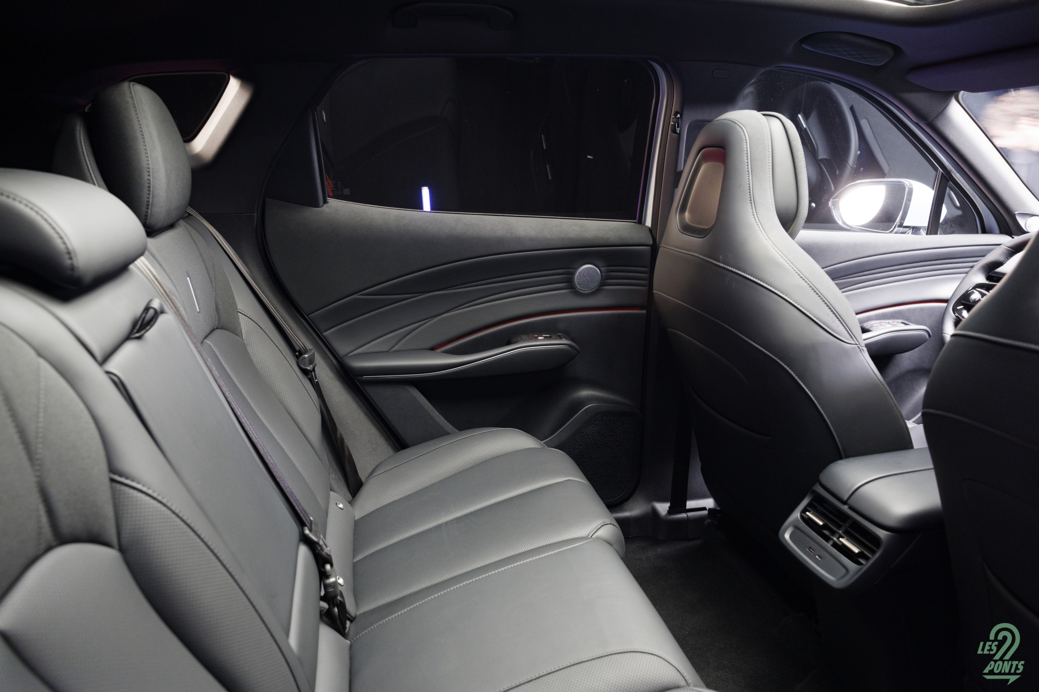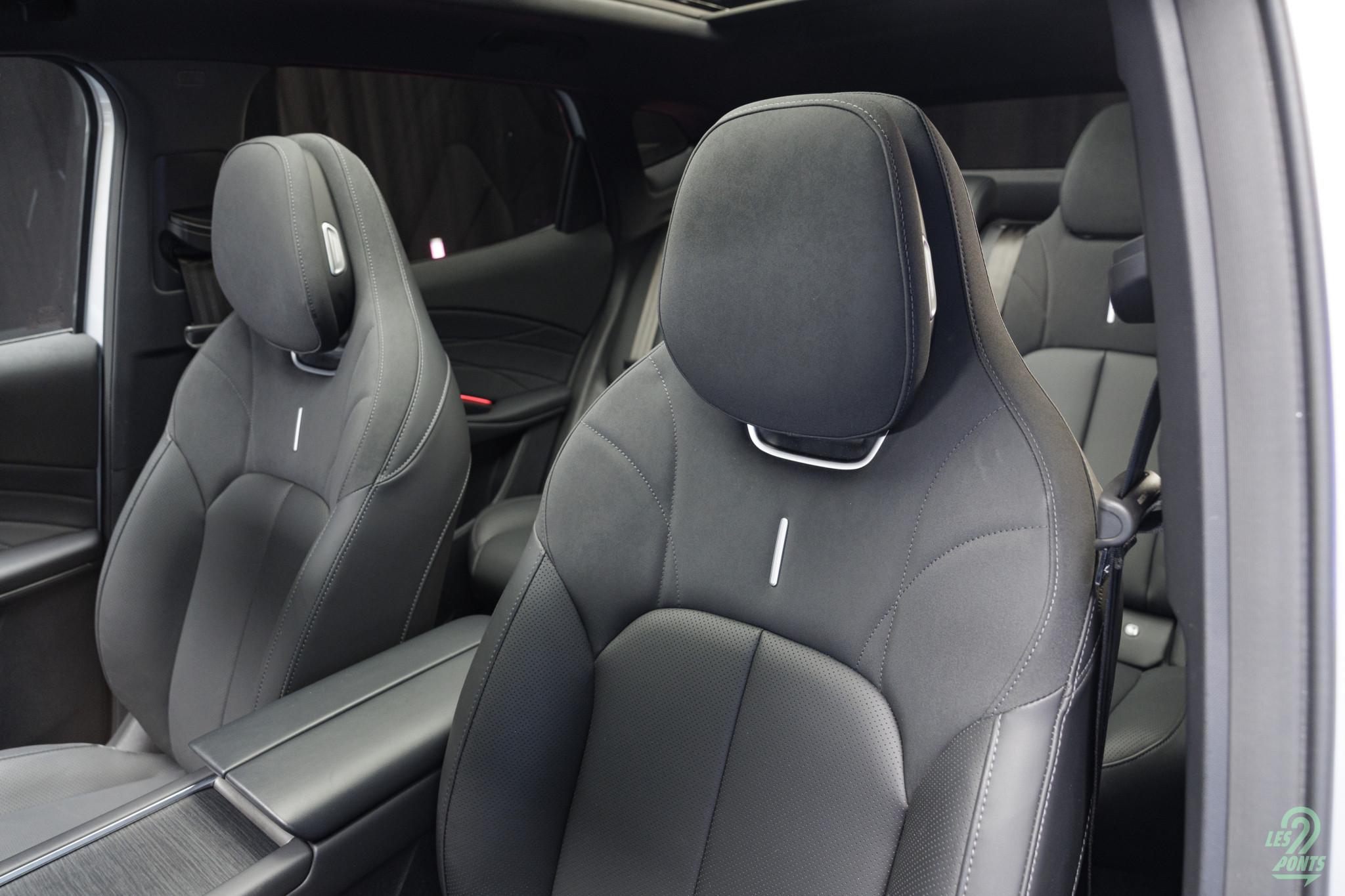 Les sièges du 7 sont élégants, mixant le cuir vegan et une sorte d’Alcantara sur la partie haute. Les appuie-têtes intégrés montrent un côté plus dynamique.