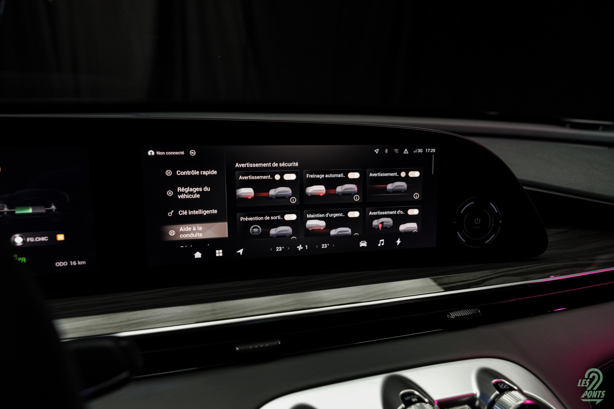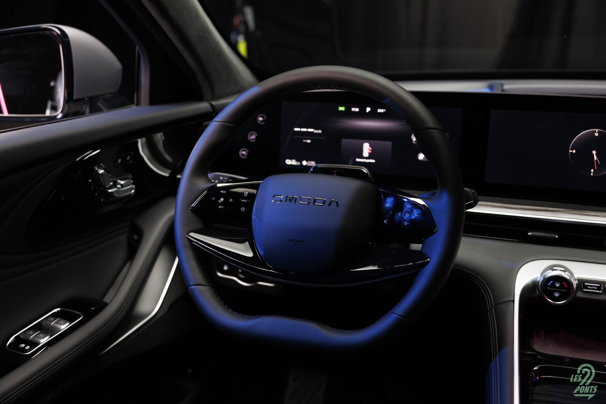 Ici l’écran central ne tourne pas … il peut glisser côté passager ! Voici la réponse intelligente de Omoda aux trois écrans d’un Mercedes, par exemple.