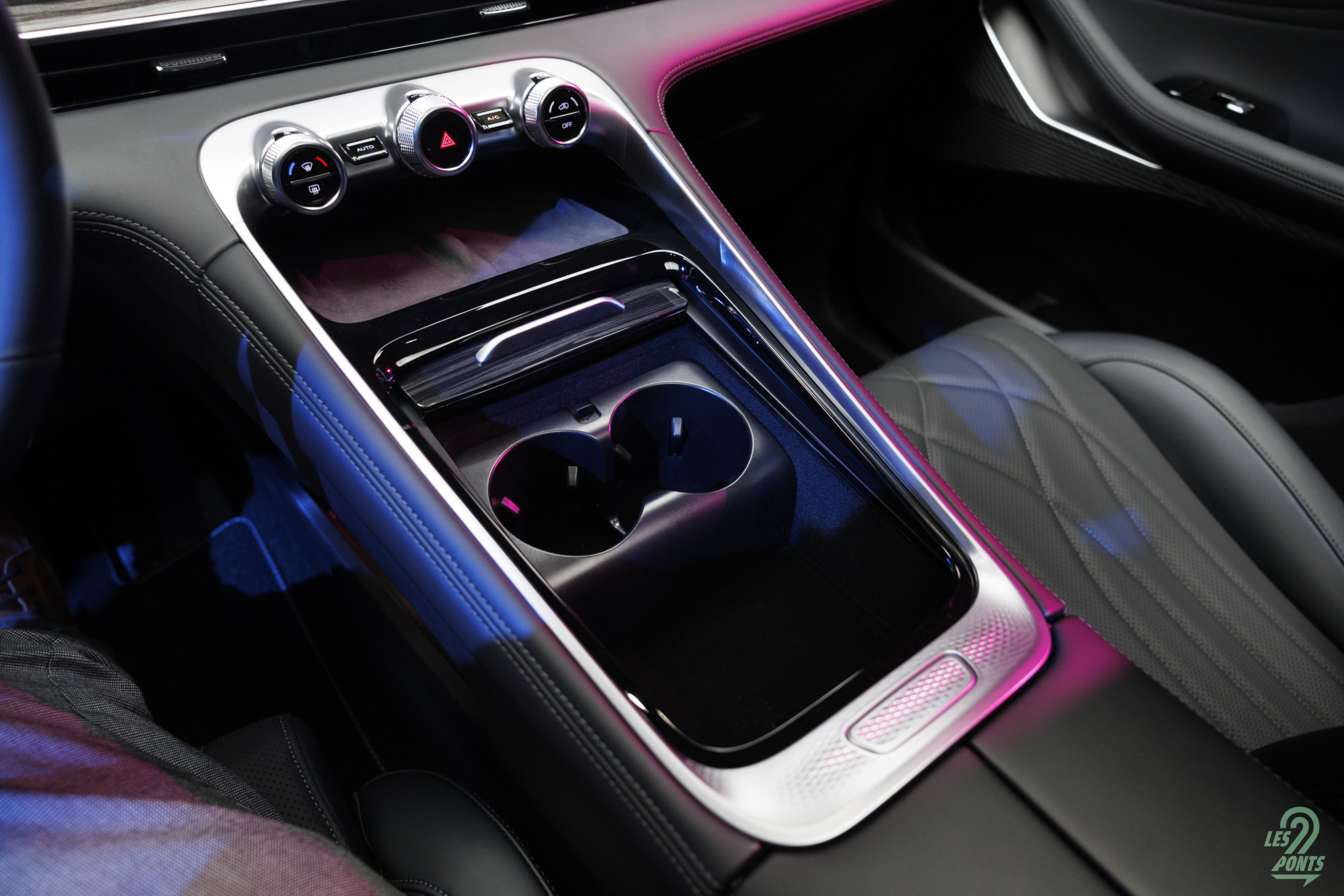 La console haute est un standard en agrément désormais, avec un double support téléphone, et une charge à induction ventilée, encore rare.