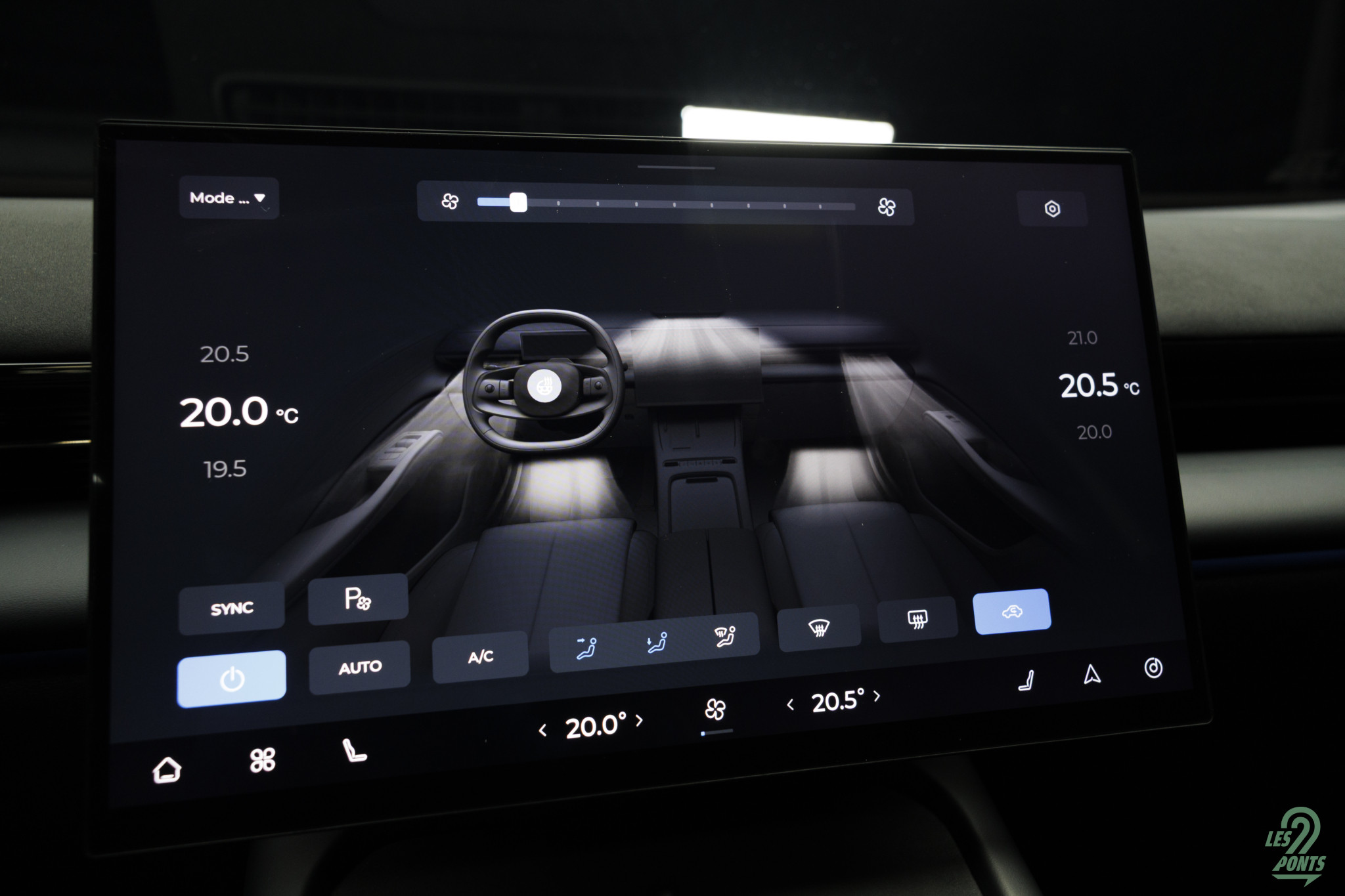 On note les commandes de climatisation physiques, élégantes. L’auto semble avoir une ergonomie réfléchie.