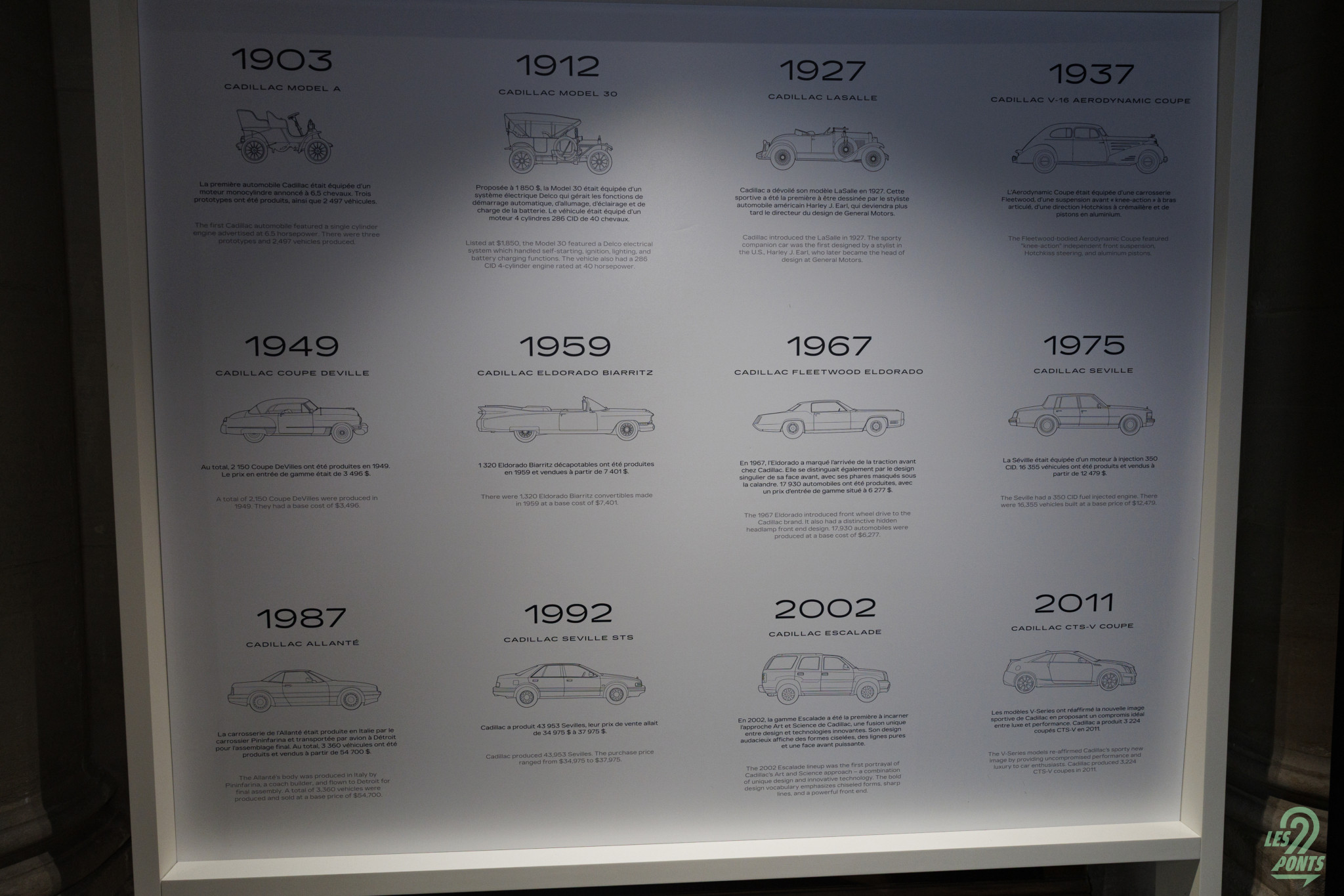 Pour terminer, quelques éléments issus du programme d’endurance de Cadillac, et autres marqueurs de la “différence Cadillac” : on ne résiste pas aux tableaux présentant des miniatures 1/18e d’époque.
