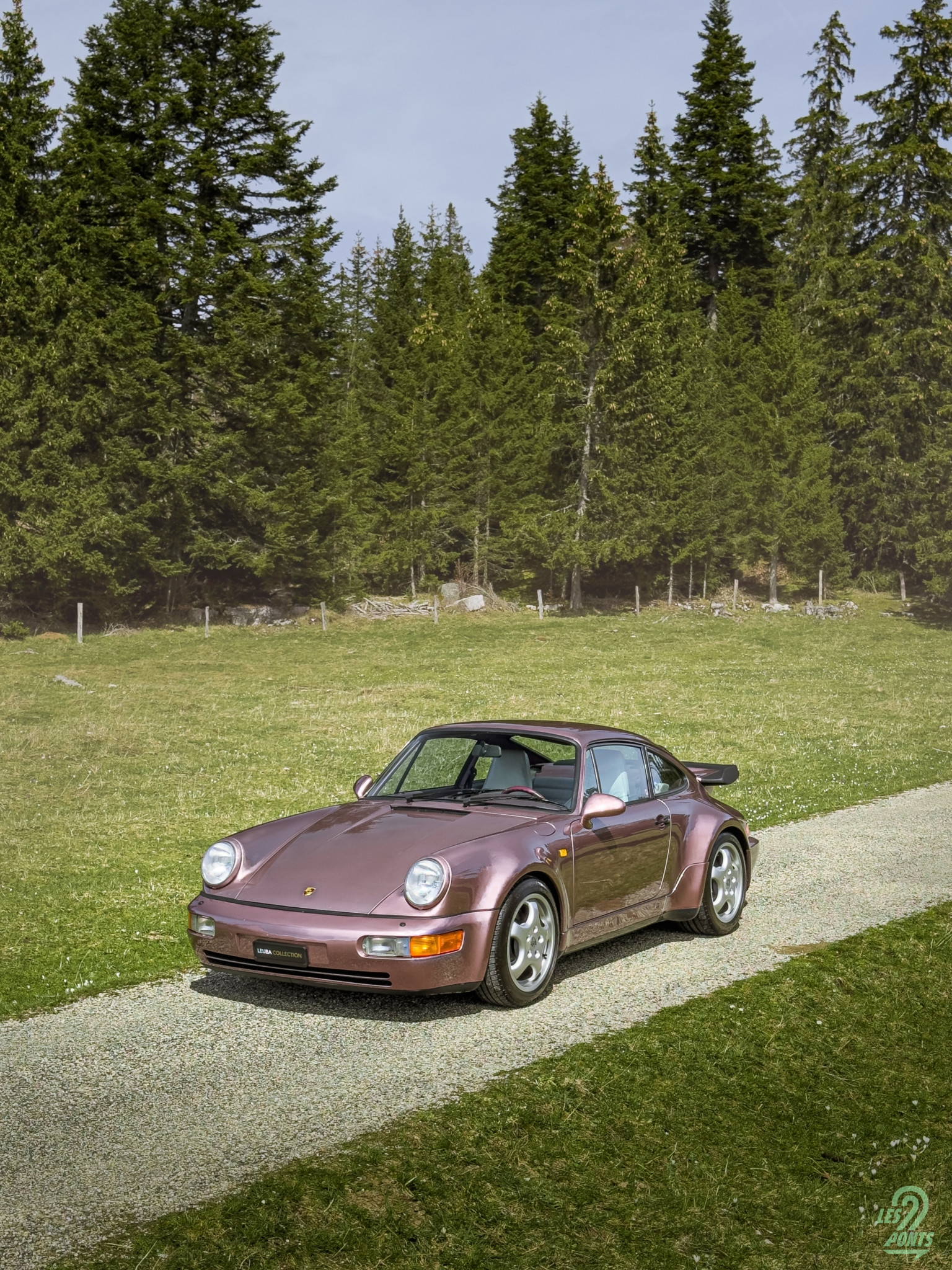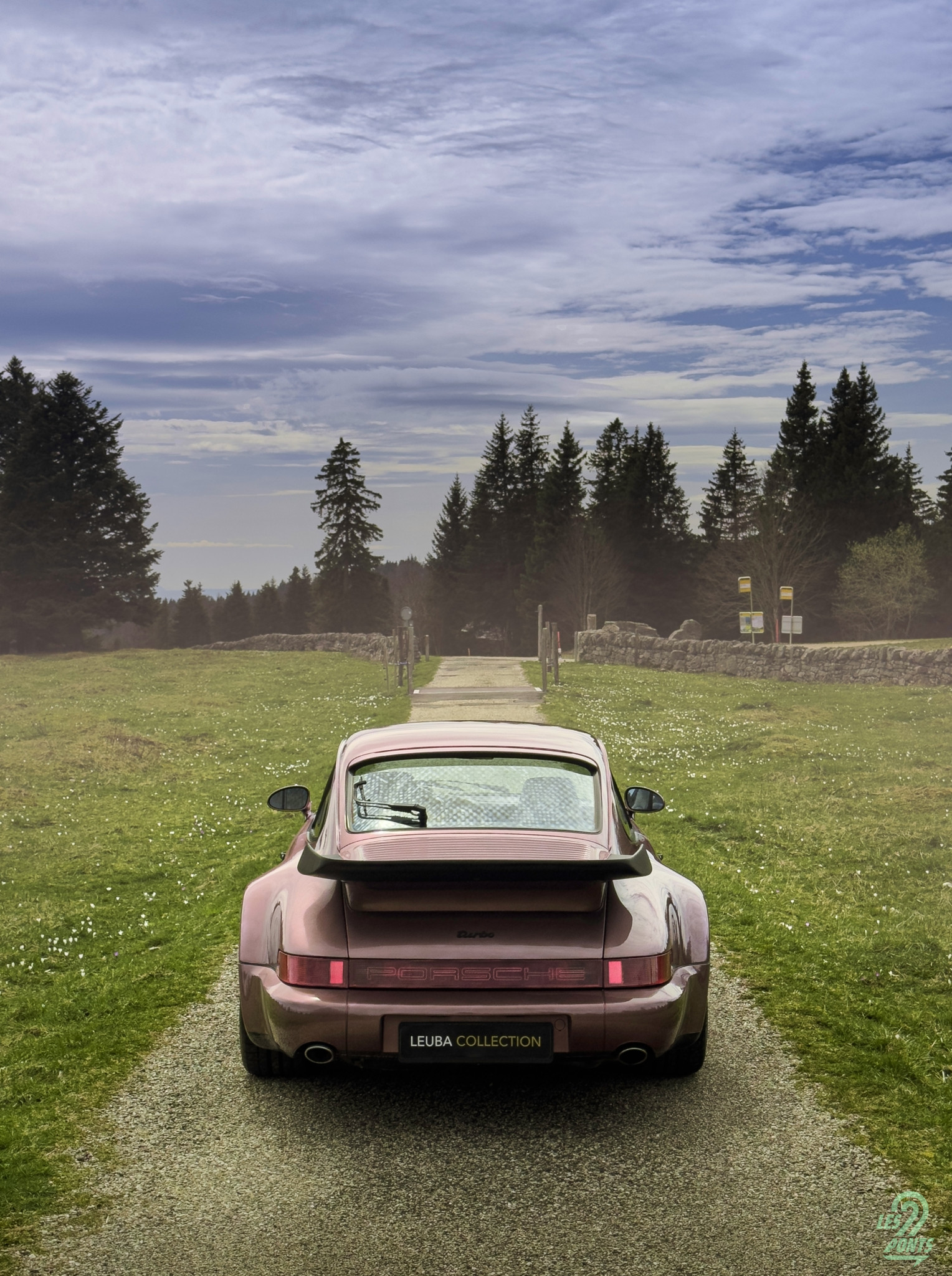Je me retrouve encore et toujours dans l’avion en direction de la Suisse, chez nos amis de chez Leuba Collection. En arrivant dans le showroom, je vois tout de suite la silhouette reconnaissable à 10 kilomètres d’une ancienne 911 Turbo sous bâche, c’est que quand Kévin retire cette dernière que je découvre cette magnifique 964 Turbo 3.3 avec une configuration unique !