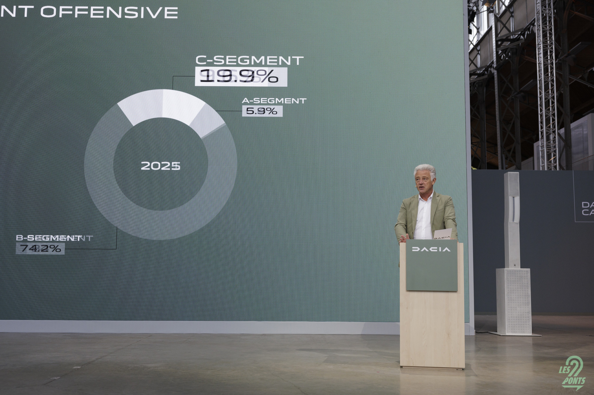 Denis le Vot avait jusqu’à présent brillamment exécuté le plan de Dacia de la Renaulution : « le leader de la mobilité abordable qui redéfinit constamment les essentiels ». Des essentiels qui montent en gamme, et en taille. Franck Marotte nous rappelait alors que si 2021 voyait Dacia essentiellement orienté vers les segments A et B, SUV inclus, 2025 voit couvrir presque 20% de Dacia sur le segment des SUV du segment C, avec le brillant Bigster. Le constructeur ne se refuse plus grand-chose, mais en étant pleinement conscient des difficultés que connaissent tant d’acheteurs sur le marché du neuf… et de l’occasion : Franck Marotte nous rappelait alors la quantité de normes, en sécurité active, passive, et en parallèle l’accélération dans l’électrification. Que de choses qui rajoutent du poids, demandent donc plus de puissance, et finissent par coûter plus cher !