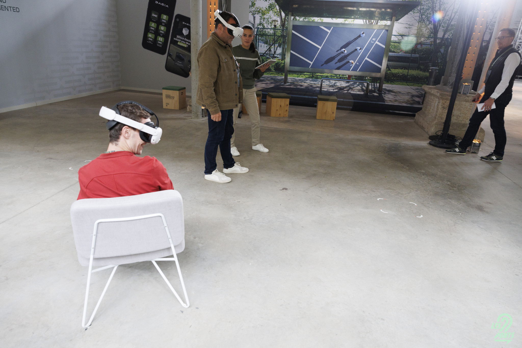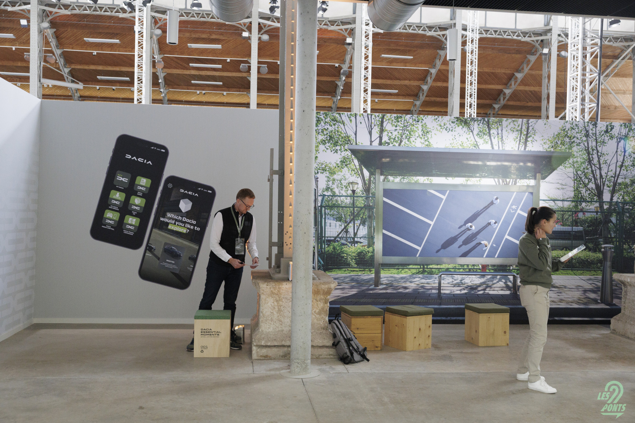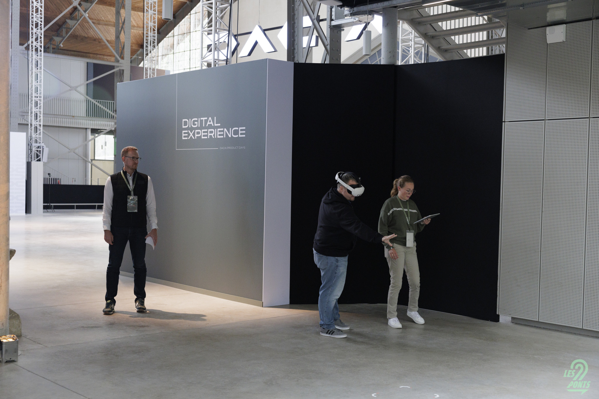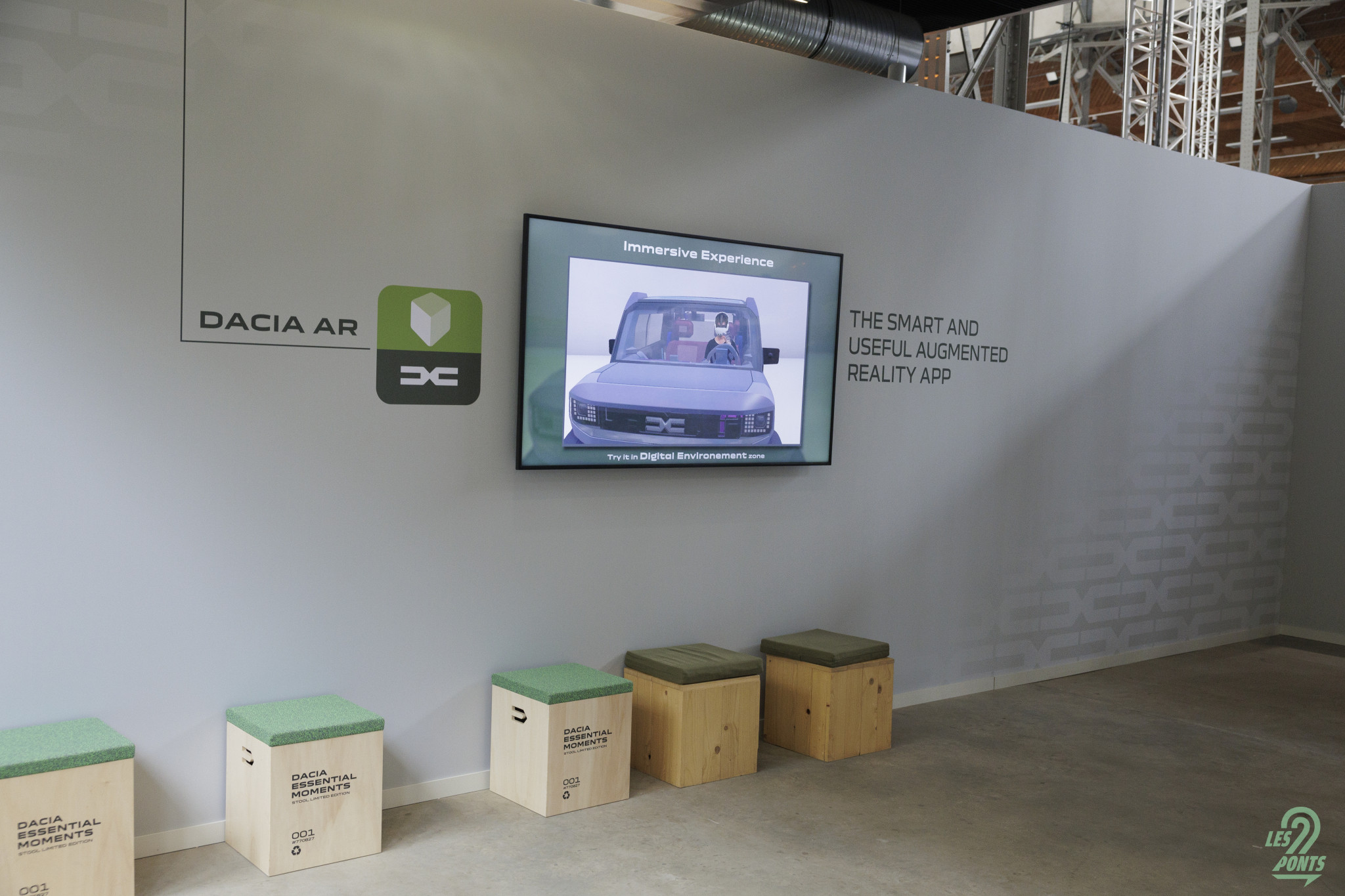 Nous avons enfin eu un aperçu de “Dacia VR”, la réalité virtuelle de Dacia, disponible dans les showrooms Dacia. Equipés et casqués, on pouvait alors observer le Hipster Concept virtuellement. Le système propose heureusement de mixer la vision réelle et virtuelle, pour que ce soit moins perturbant (!). Des animations permettent alors de venir ouvrir les portes de l’auto, positionner des accessoires Youclip à bord de l’auto, tout vient alors de l’habitude de “préhension virtuelle” des divers objets. Une expérience intéressante, dont bénéficient désormais largement les équipes de conception, design, produit, lors de la création des nouvelles autos. Le design, les jeux d’affleurement, l’ergonomie y sont alors perçues de manière plus “réelle” que sur une simple conception assistée par ordinateur CAO, et évitent un certain nombre de coûteuses maquettes en clay, etc. Petit souvenir d’une expérience il y a 12 ans au Technocentre, saint des saints de la R&D du Groupe Renault, et le simulateur Cave 3D…