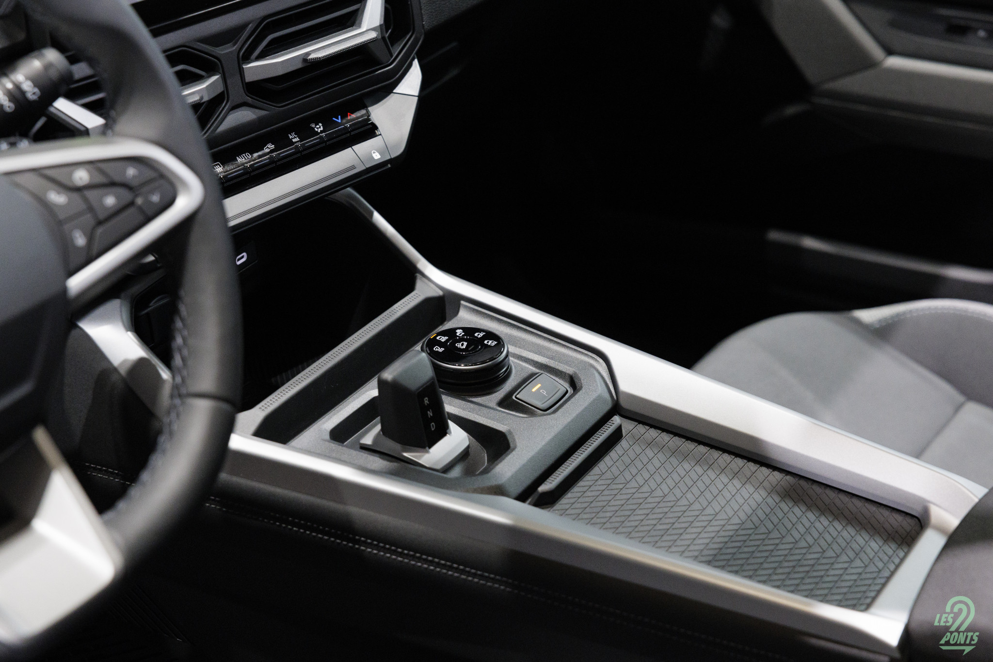 Le récent sélecteur de l’hybrid 155 se retrouve ici. On note à côté le sélecteur de modes de conduite : Auto, Eco, Snow, Mud-Sand, Lock, Hill Descent Control.