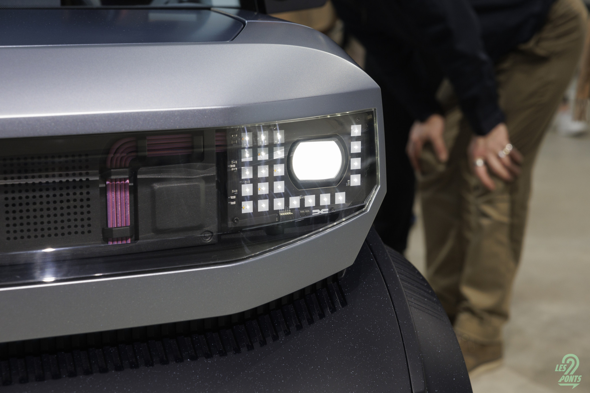 Seulement pour une auto à visée essentiellement extra urbaine, si compacte et légère, il faut que la réglementation évolue. Le concept s’intercale parfaitement entre des quadricycles lourds “L7e” tels que le Mobilize Duo (remplaçant du Renault Twizy), eux-mêmes dérivés des L6e quadricycles légers tels que la célèbre Citroën Ami, et des vrais citadines électriques telles que l’actuelle Spring. La remplaçante devrait bénéficier de la plateforme de la nouvelle Twingo E-Tech, ne voyez pas dans ce concept une future Spring ! La différence entre les deux catégories se tient en le contexte réglementaire : pourrait-on obtenir ce genre de keicars bien connues au Japon pour des utilisations plus ciblées et urbaines, à des vitesses réduites, très légères et très compactes ? Autrement formulé, existe-t-il une exception pour ces usages du quotidien face au torrent de nécessités d’homologation des autos “échelle 1” ?! On rappelle par exemple qu’une Citroën Ami, limitée à 45 km/h, peut se passer d’airbag et d’ABS, par exemple. C’est la question que se pose Dacia, laissant la porte ouverte à l’avenir de ce concept, attentif aux progrès technologiques et aux évolutions de la réglementation.