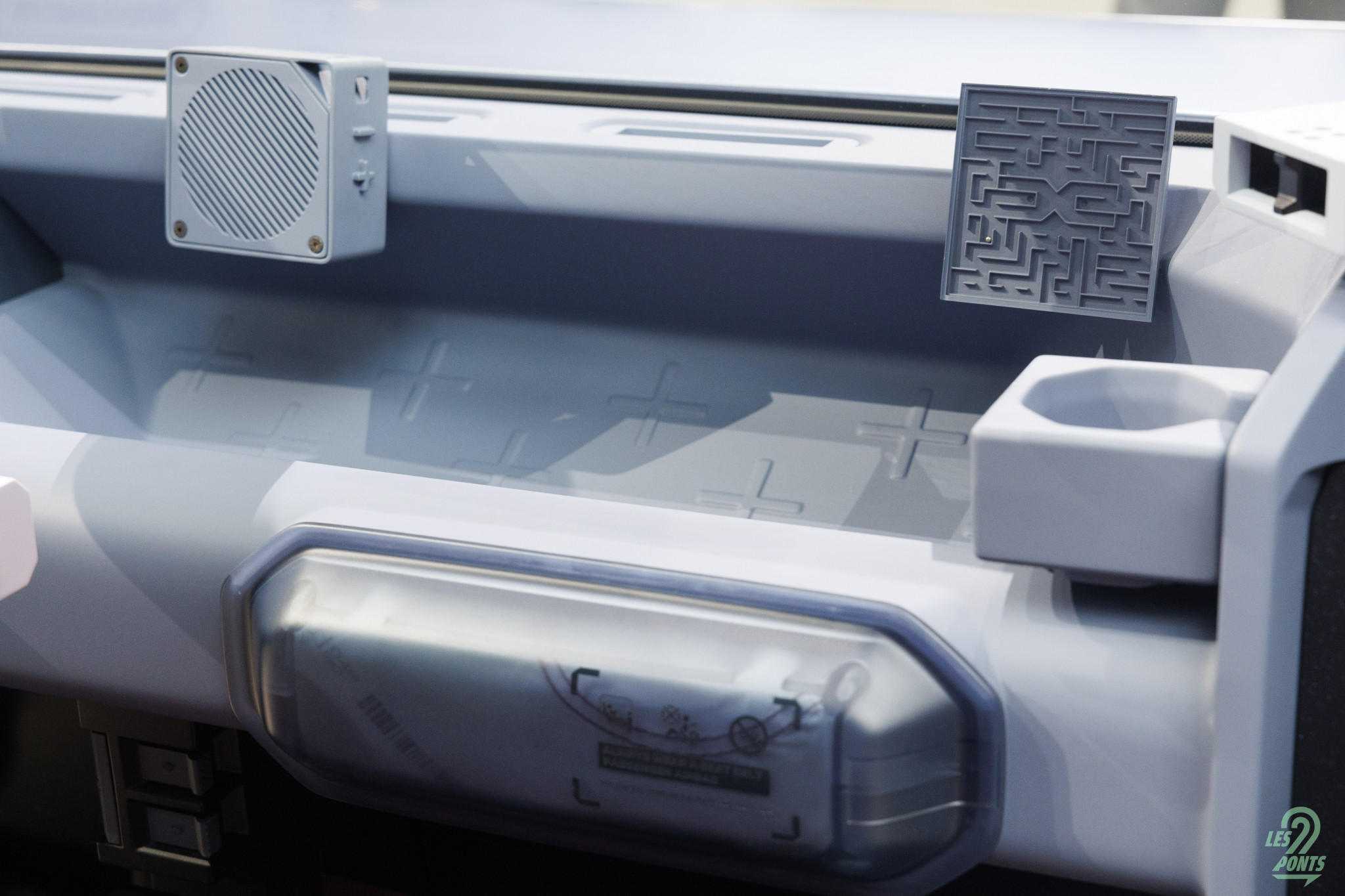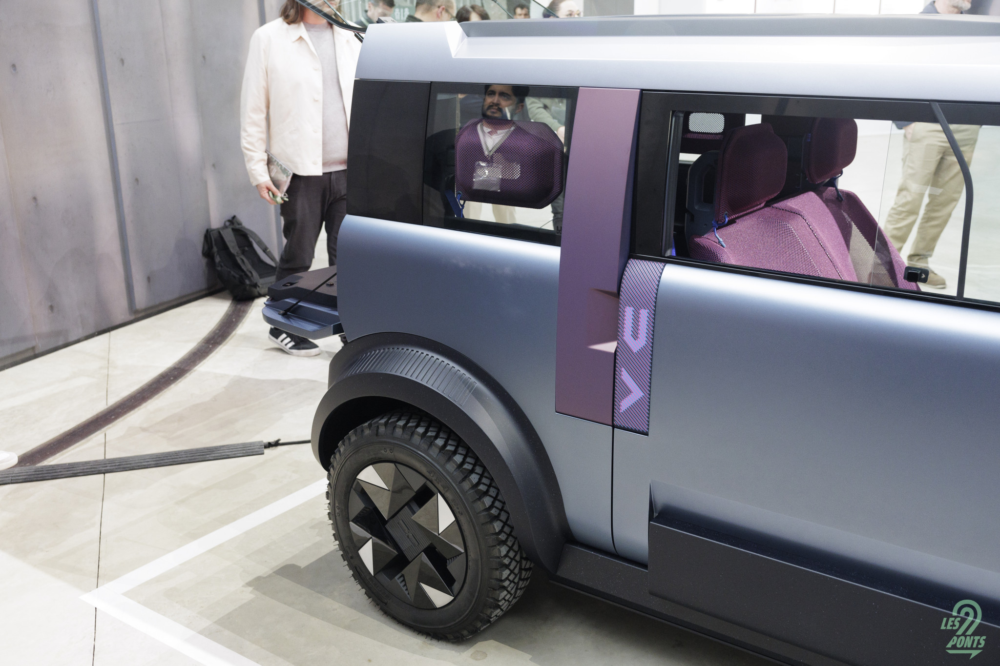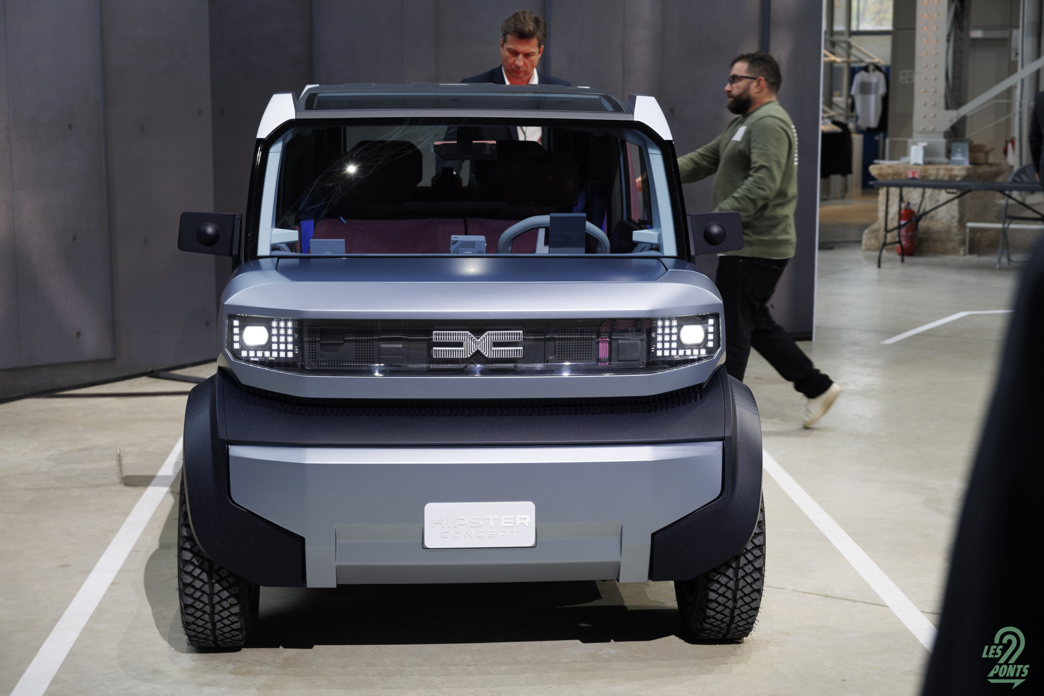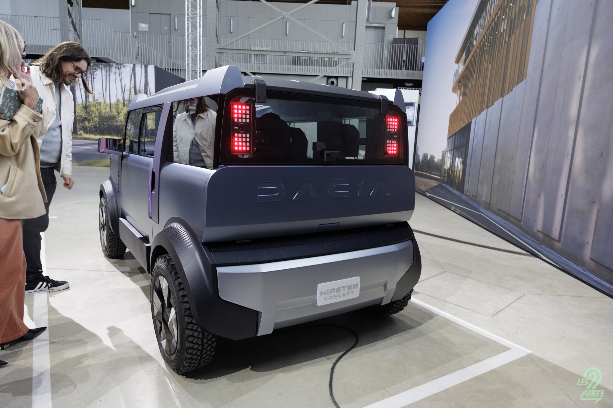 Le meilleur pour la fin ? Le Hipster Concept ! Selon le discours des hautes têtes pensantes de la marque présentées en début d’évènement, voilà la vision d’avenir ultime de Dacia comme auto électrifiée et “essentielle”. Quel est le strict nécessaire pour l’extra-urbain de demain ? Quatre places dans un gabarit ultra contenu de 3 m de long (1,53 de haut, 1,55 m de large, deux recharges électrique pour une semaine de trajets du quotidien / domicile-travail, et de quoi occasionnellement transporter une machine à laver (!) : le coffre passe d’un volume limité de 70 à 500 L en rabattant les deux sièges arrière.