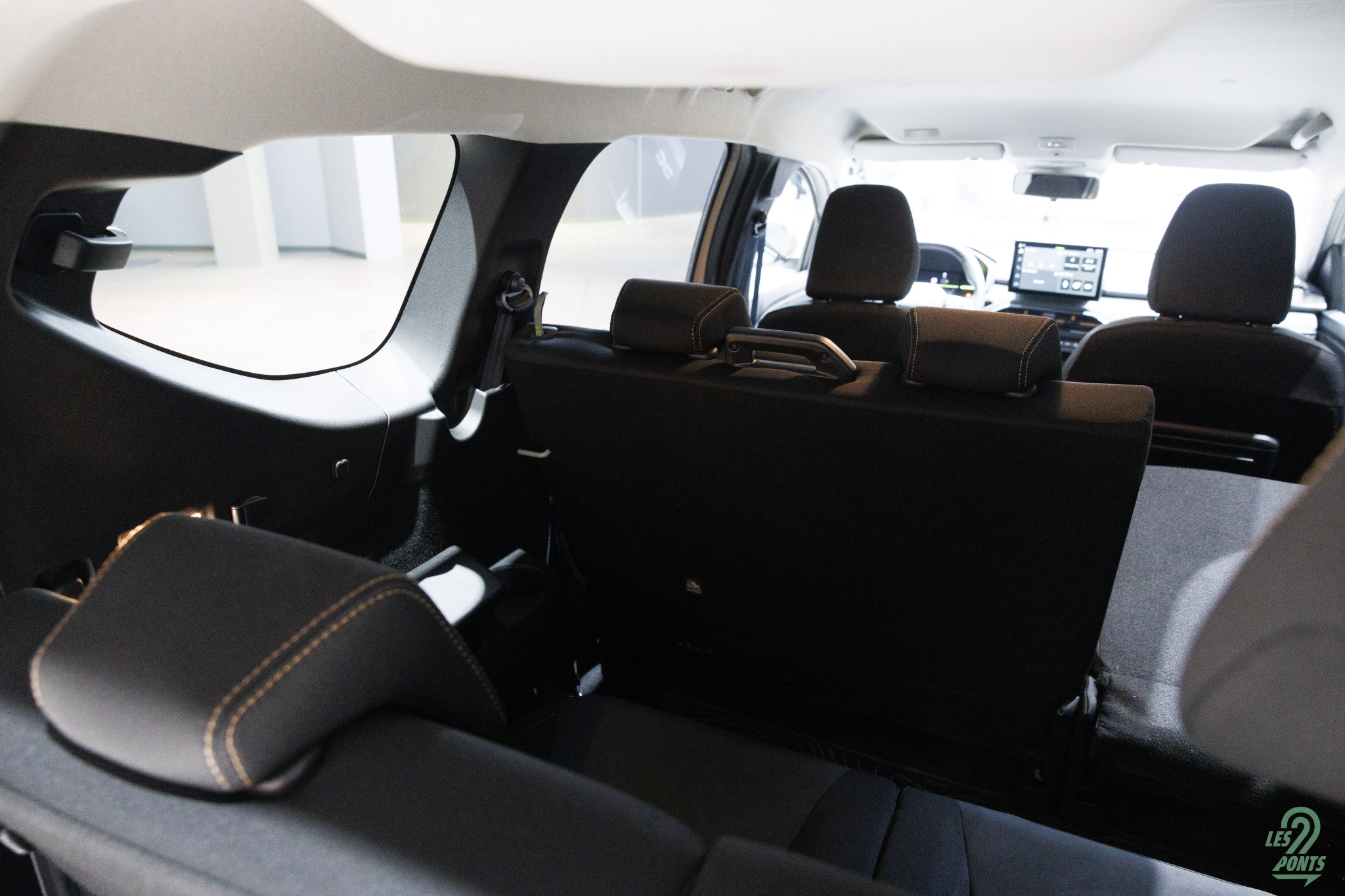 - Siège passager avant rabattu pour dégager l’espace à bord.