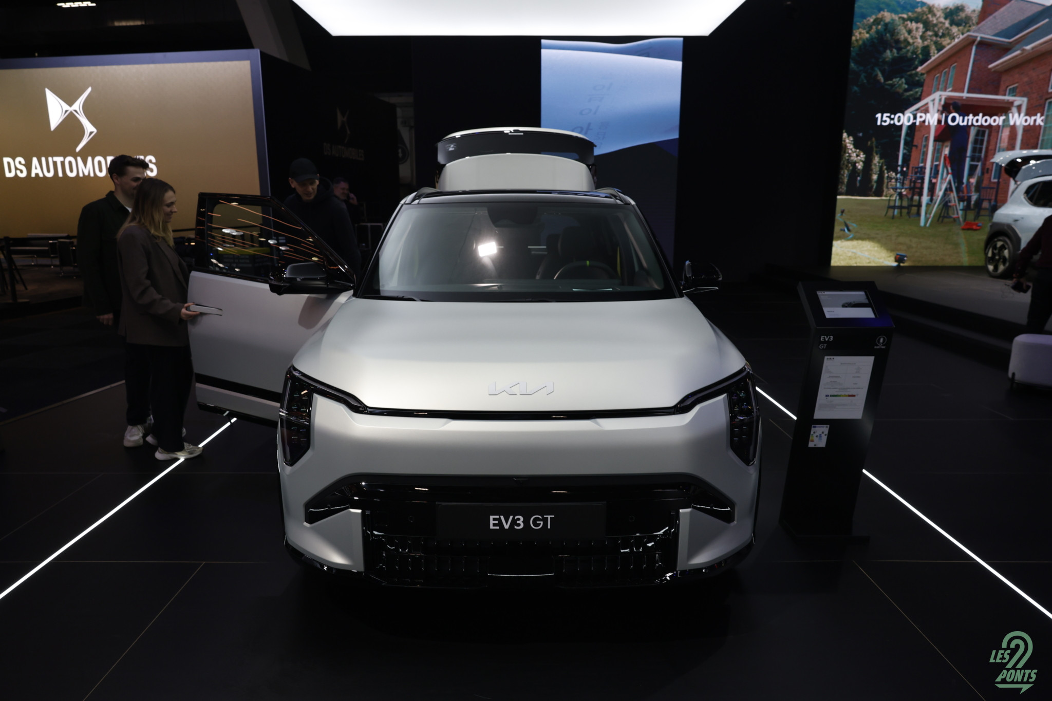 On rappelle que les EV3,4,5 GT rejoignent les deux premiers modèles équipés de cette finition dynamique : les EV6 GT (récemment restylée, la cousine de la Hyundai Ioniq 5 N lui récupère les palettes au volant pour la simulation de changements de rapports et sonorité artificielle !) et l’imposant EV9 GT. Le très futuriste PV5 Passenger n’a en revanche pas encore sa version GT 😉