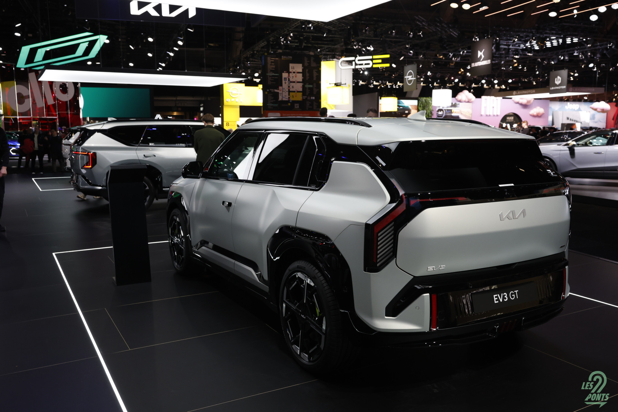 Les EV3 GT et EV4 GT reposent sur une architecture technique partagée, déclinée en trois silhouettes distinctes : SUV compact (EV3), berline compacte et berline Fastback (EV4). Les deux modèles adoptent une transmission intégrale à double moteur développant 215 kW (145 kW à l’avant, 70 kW à l’arrière), soit environ 292 ch, associée à une batterie de 81,4 kWh.