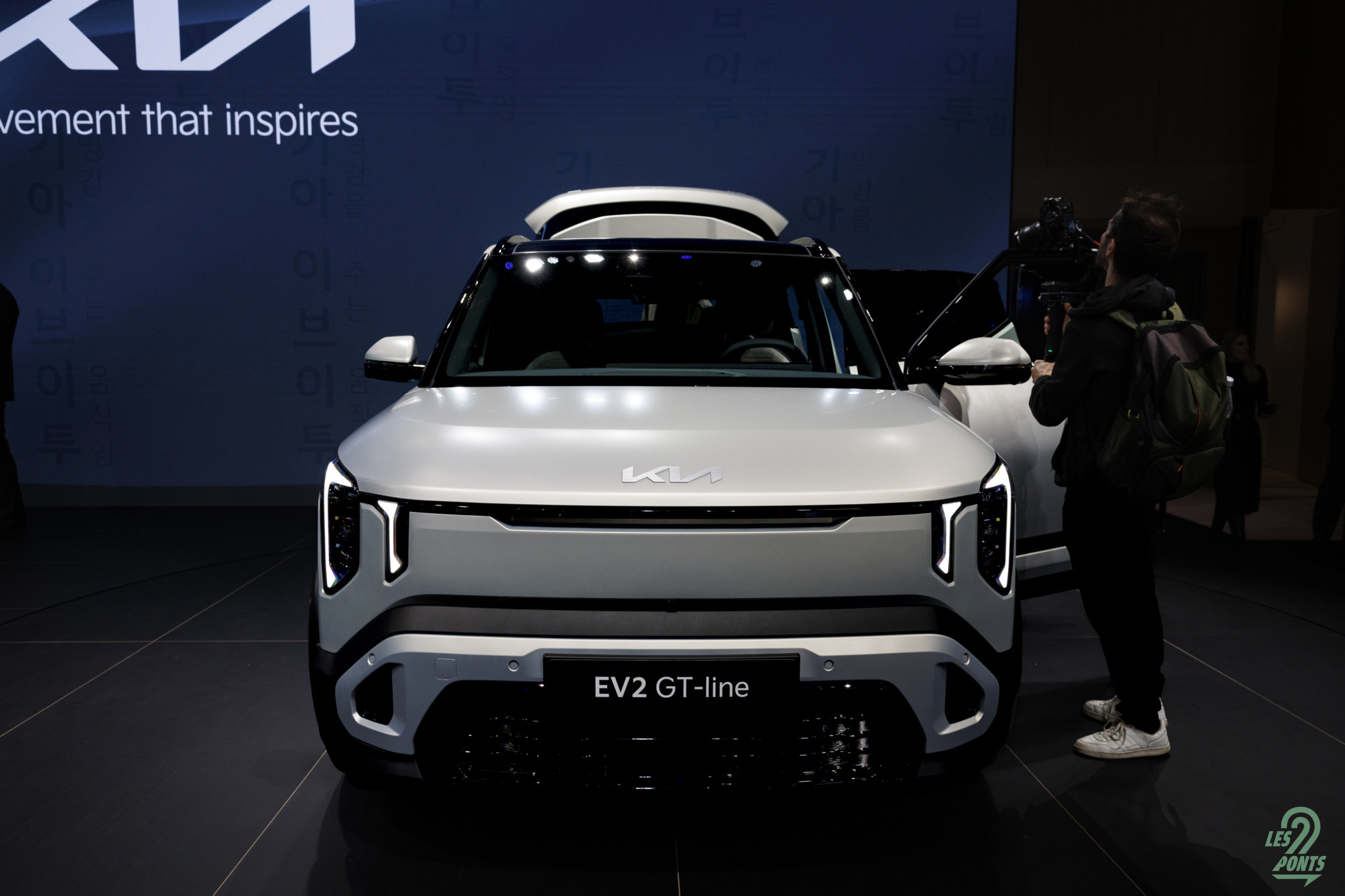 La cadette de cette famille au nouveau visage se nomme EV2. La plus petite, oui ; la moins intéressante ? Pas sûr. L’EV2 est un petit SUV compact « made in Europe » qui sert de billet d’entrée dans la famille EV et s’interprète comme la déclinaison Kia du petit Hyundai Inster. En entrant sur le deuxième plus grand segment automobile d’Europe, celui des B-SUV, l’EV2 renforce la position de Kia sur un marché qui devrait prendre une importance croissante pour les véhicules électriques d’ici la fin de la décennie. L’EV2 se frotte à la Renault 4 néo-rétro, la Jeep Avenger, le nouveau Skoda Epiq et la ë-C3, même si celle-ci demeure largement moins onéreuse.