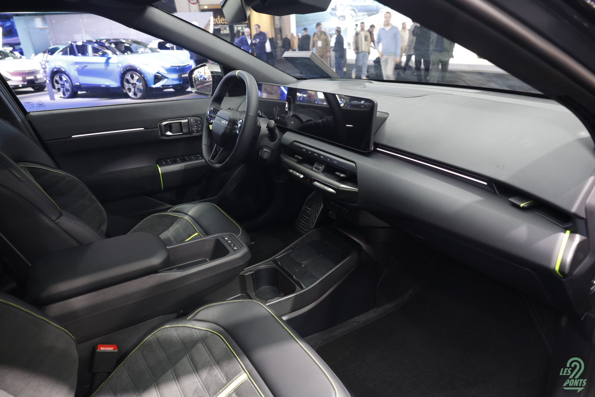 À bord, l’ambiance est clairement orientée sport : sièges semi-baquets spécifiques, volant trois branches dédié, accents Vert Néon et interface GT exclusive. De quoi rappeler que cette EV4 ne se contente pas de transporter des passagers, elle s’adresse aussi au conducteur.