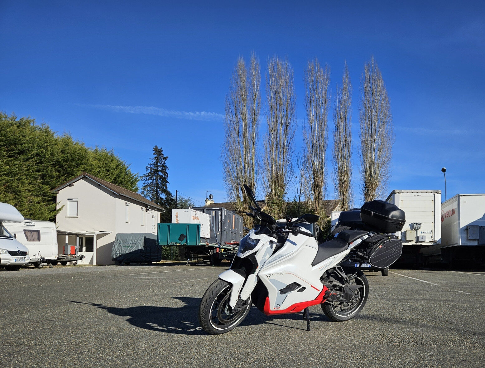 La température ambiante a sûrement, elle aussi, joué un rôle d’élément perturbateur. Chargée jusqu’à 100 % avant de passer la nuit dehors sous 4°, la batterie n’affiche plus que 91 % au réveil. De même, la moto refuse d’activer l’un des neuf niveaux de frein régénératif lorsqu’elle est trop froide – cela afin de préserver les cellules. Il faudra rouler entre 9 et 13 kilomètres pour récupérer cette précieuse fonctionnalité, qui ne trouve selon nous un intérêt qu’au niveau maximal. Même les temps de recharge sont visiblement impactés en hiver. Pour passer de 21 % à 100 % de batterie, la F77 annonce 2h46 de chargement. Nous revenons, chronomètre en main, après cette attente. La moto n’a finalement atteint que 84 %. La météo a sans aucun doute impacté notre essai, dont les tentatives de V-Max.